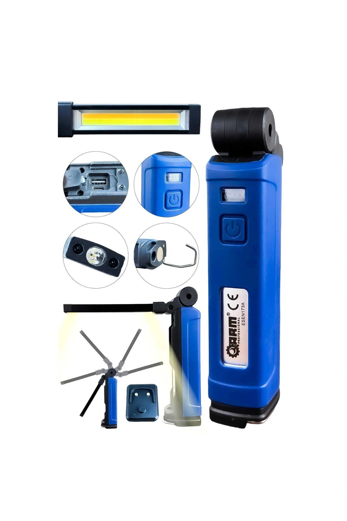 Arm Esen173-a 1000 Lümen Mıknatıslı Döner Başlıklı Powerbank Şarjlı Tamirci Feneri