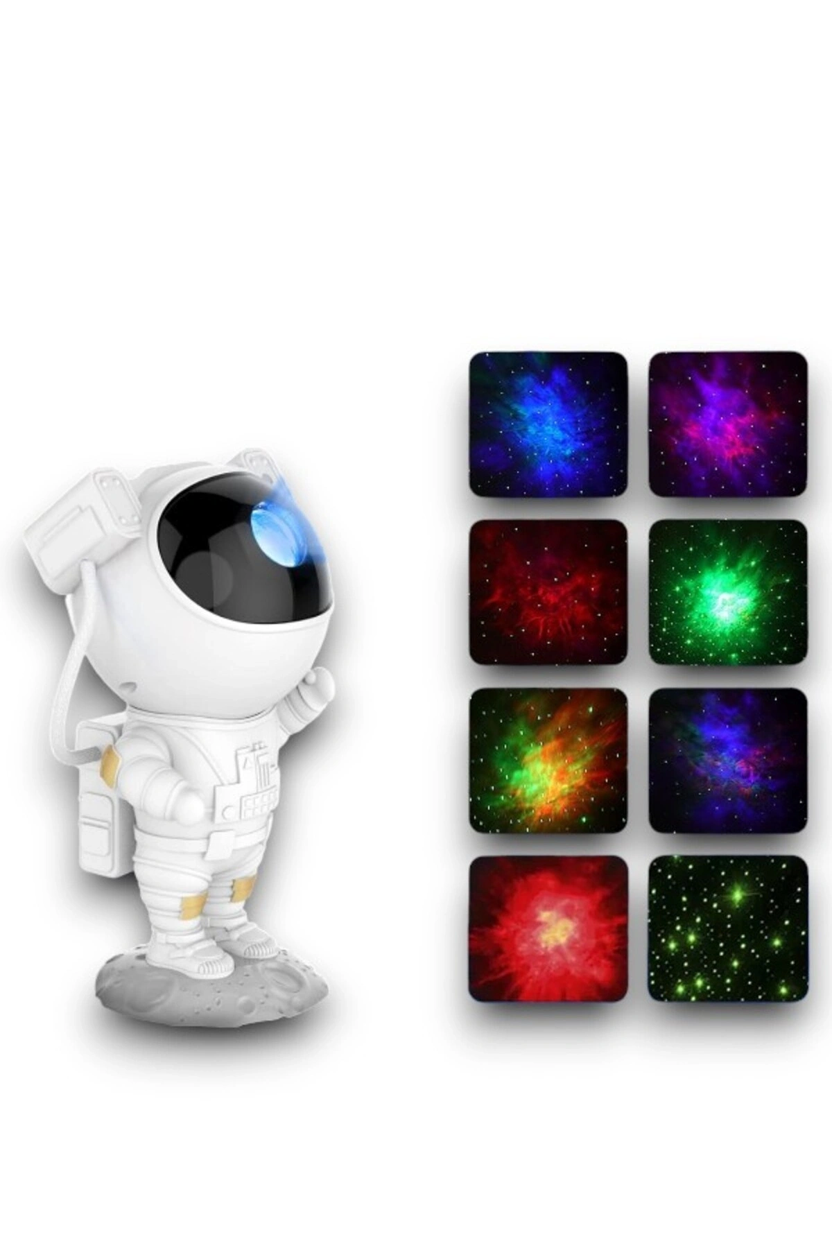 Ürün bluetooth ludur telefon ile baglantı yapılıp müzik dinlenebilir kendi içerisinde müzik mevcuttur kuş cıvıltısı dalga sesi sömine ateş sesi uyku müziği nebula yıldız ve ay yansıtmalıdır ana malzeme: ABS + PC + PVC + TPE Ürün boyutu: 120*113*228mm Paket boyutu: 123*115*240mm Ürün brüt ağırlık: 655g Ürünün Net ağırlığı: 487g Dış kutu boyutu: 505*390*485mm Anma gerilimi: 5V/1A Anma gücü: 5W Güç modu: USB kablosu güç kaynağına bağlı Standart ürün konfigürasyonu: astronaut projeksiyon lambası * 1 Taban * 1 USB güç kablosu * 1 İngilizce eğitimi * 1 Uzaktan kumanda * 1(2 No.; pil gereklidir Kutuda Pil Hariçtir Özellik: 1. nebula etkileri çeşitli görüntülenir ve nebula hızı ve parlaklığı ayarlanabilir 2. Yıldızların parlaklığı ve hızı ayarlanabilir 3. Nebula ve yıldız lambası aynı anda veya tek başına kullanılabilir 4. İki zamanlama modu: 45 dk ve 90 dk 5. Projeksiyon açısı irade ayarlanabilir 6. Projeksiyon lambası ve dekorasyon olarak kullanılabilir.