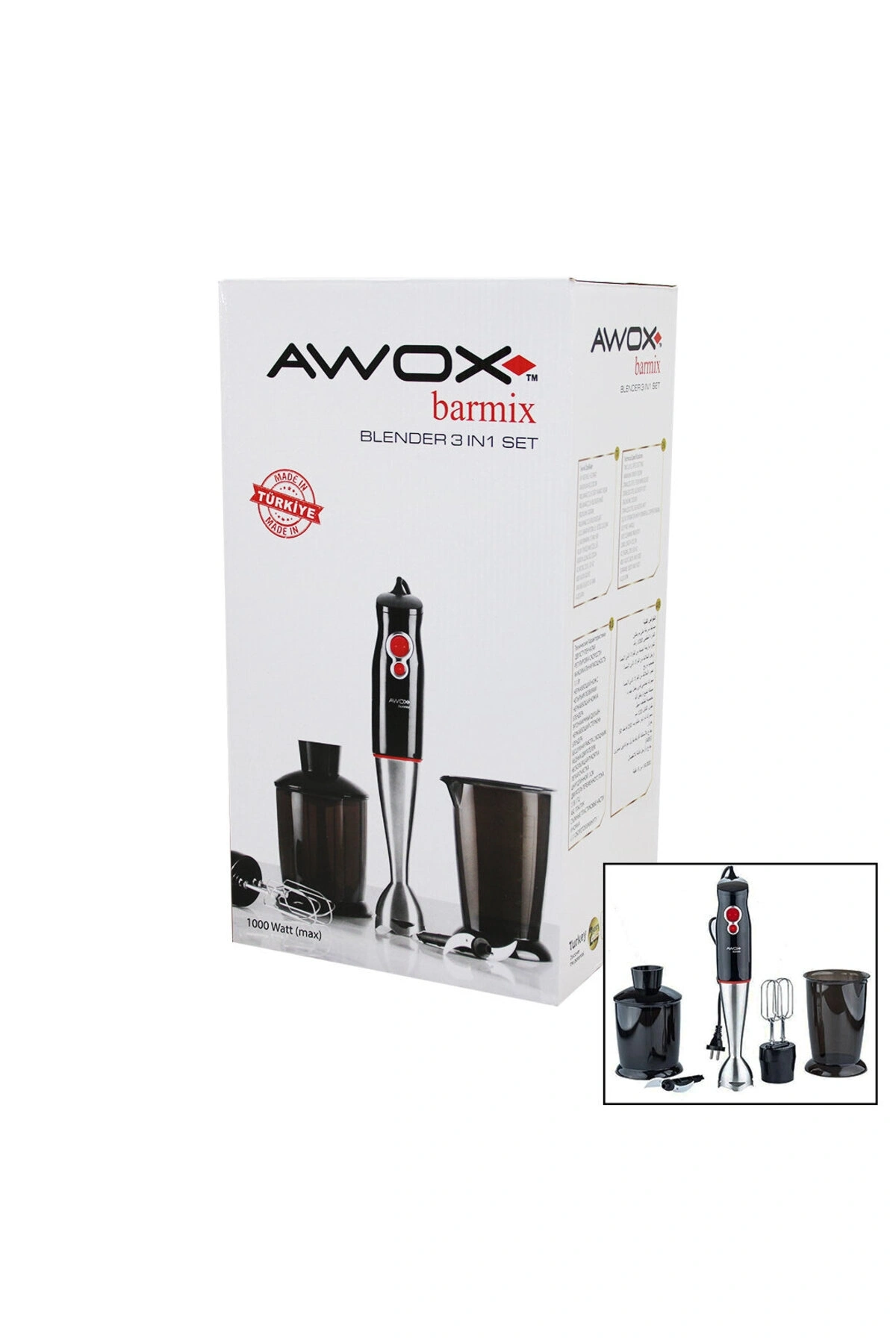 AWOX BARMİX 3İN1 BLENDER SETİ ÇELİK 2Lİ MİKSER ÇELİK RONDO BIÇAK ÇELİK 4 KANATLI BIÇAK 1000W
