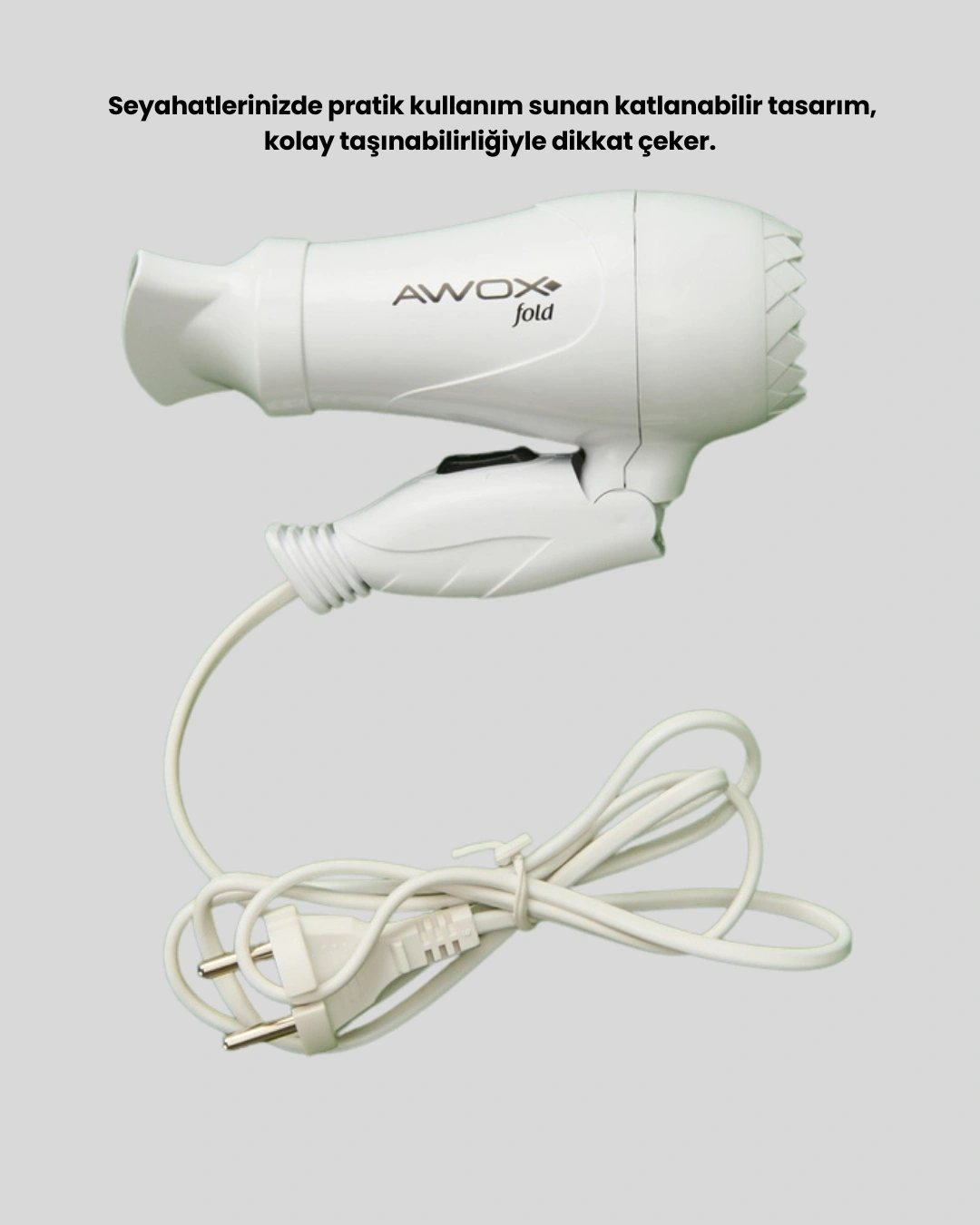 Kompakt seyahat tipi saç kurutma makinesi, taşınabilirliği ve fonksiyonel yapısı ile öne çıkar. Katlanabilir gövde tasarımı, ürünü hem evde hem de seyahatlerde kullanışlı hale getirir. Çanta içinde rahat taşınır.Çift kademeli ayarları, saç kurutma sürecini kontrol altına alır. Enerji tasarruflu yapısı ve geniş voltaj uyumluluğu, ürünü çok yönlü bir kişisel bakım cihazı haline getirir.Bu saç kurutma makinesi, pratik tasarımı ve işlevsel özellikleriyle günlük bakım rutinini destekler.