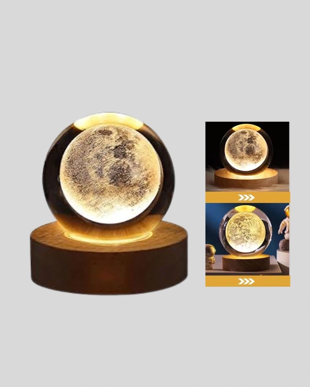 Ay Temalı Kristal Küre Gece Lambası LED Aydınlatmalı Premium Dekor