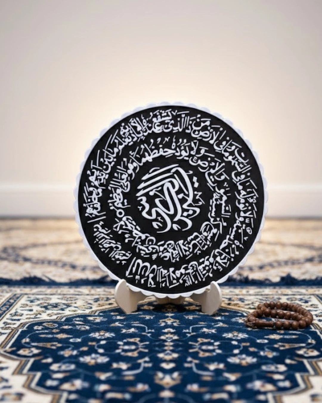 Ayetel Kürsi yazılı masaüstü pano, modern yaşam alanlarında manevi atmosfer oluşturmak isteyenler için tasarlanmıştır. Siyah arka planı ve beyaz yazı detayı sayesinde hem klasik hem çağdaş dekorasyonlara uyum sağlar. Detaylı yazı kompozisyonu estetik bir çerçeve oluştururken merkezdeki tasarım güçlü bir vurgu yaratır. Bu sayede ürün, bulunduğu ortamda dikkat çeken bir odak noktası haline gelir. Standlı yapısı sayesinde sehpa, konsol, raf veya masa üzerinde kolaylıkla sergilenebilir. Yer kaplamayan kompakt yapısı ile minimal dekorasyon sevenler için uygundur. Manevi anlamı yüksek olan bu tasarım, hem kendiniz için hem de sevdikleriniz için değerli bir hediye alternatifi sunar.