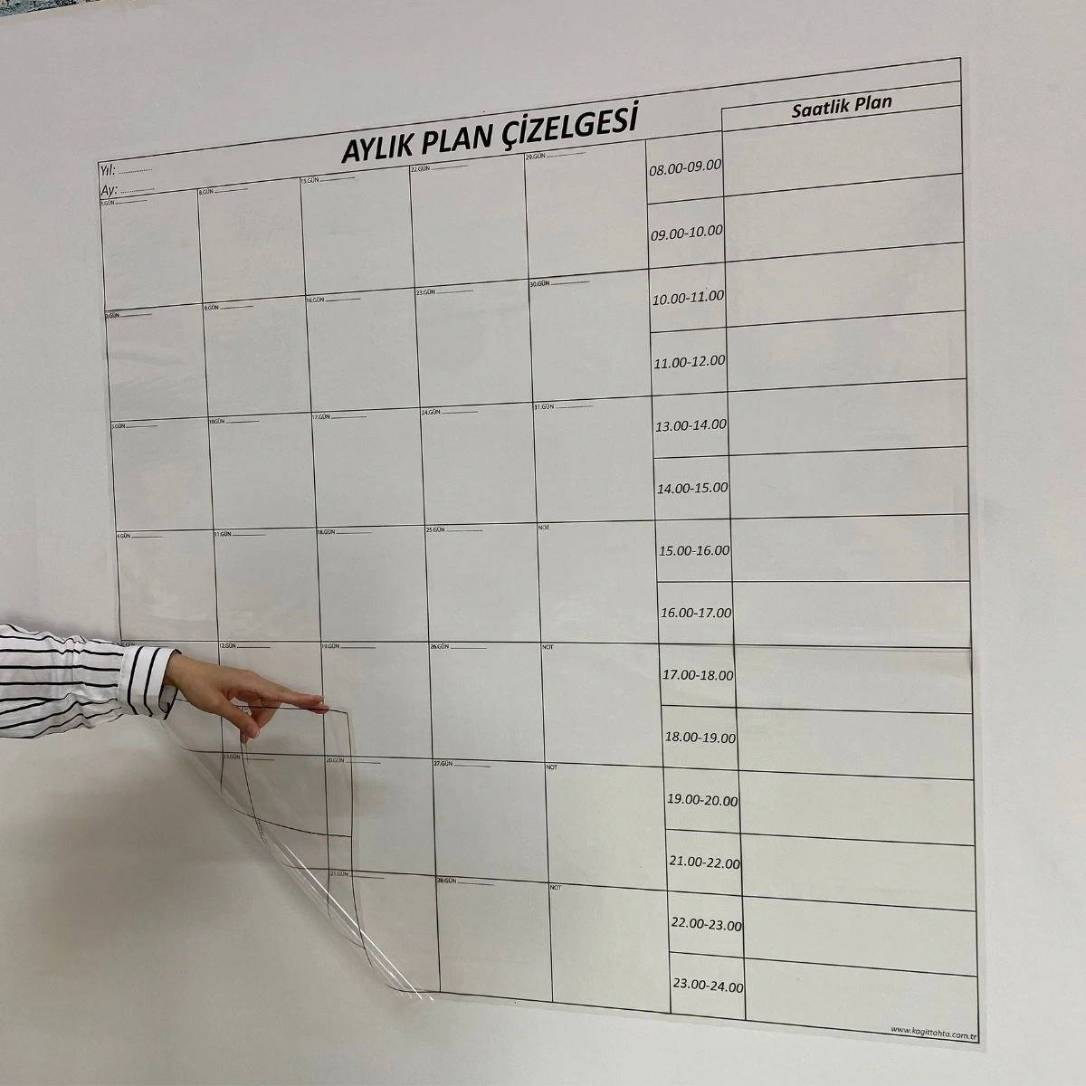 Duvar tipi aylık planlayıcı, manyetik olarak duvara sabitlenir. Herhangi bir yapıştırıcı ya da çivileme gerektirmez.