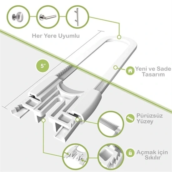 Çocukların dolap kapaklarını açmasını ve çekmecelere erişimini engeller.