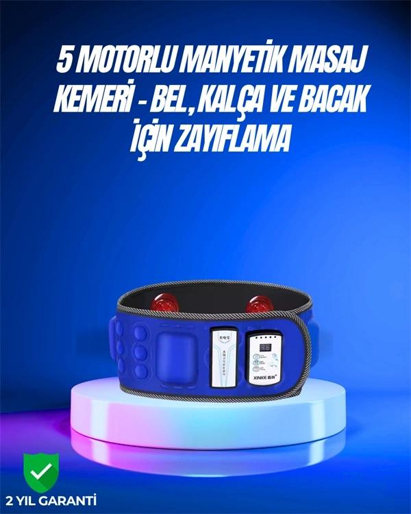 Profesyonel kullanıma uygun bu zayıflama ve masaj kemeri; yoğurma tipi titreşim, manyetik alan uygulaması ve ayarlanabilir hız kademeleri ile donatılmıştır. Özellikle yoğun günler geçirenler, masa başında çalışanlar ve aktif spor sonrası kas yorgunluğu yaşayanlar için rahatlatıcı ve toparlayıcı bir üründür.Dahili 5 güçlü titreşim motoru, hedeflenen bölgelerde kaslara derinlemesine nüfuz ederken, 20 mıknatıslı iç dizayn, enerji akışını dengeleyerek kan dolaşımını hızlandırır. Tüm bu teknoloji, selülit görünümünün azaltılmasına, bölgesel şekillenmeye ve gevşeyen kasların toparlanmasına destek sağlar.128 cm uzunluk x 13 cm genişlik ölçüleri sayesinde her vücut tipine uygun şekilde ayarlanabilir. Bel, göbek, kalça, bacak ve kollar gibi bölgelerde doğrudan kullanılabilir. Cihaz, 100-240V geniş voltaj aralığı ile evrensel adaptör desteği sunar ve 12V çıkış voltajıyla güvenli kullanım sağlar.Şarj edilebilir bataryası, kısa süreli elektrik depolama özelliğine sahiptir ve toplam 7.2W gücünde çalışır. Taşınabilirliği artıran bu özellik, ürünü kablosuz da kullanmanıza olanak tanır.Sadece 750 gram ağırlığında olan ürün, kolay taşınabilir ve katlanabilir yapıdadır. Dayanıklı malzemesi, uzun süreli kullanımlara uygun olarak tasarlanmıştır. Paket içeriği, cihazla birlikte kullanma kılavuzu ve garanti belgesi içerir. Profesyonel bir deneyim sunar.