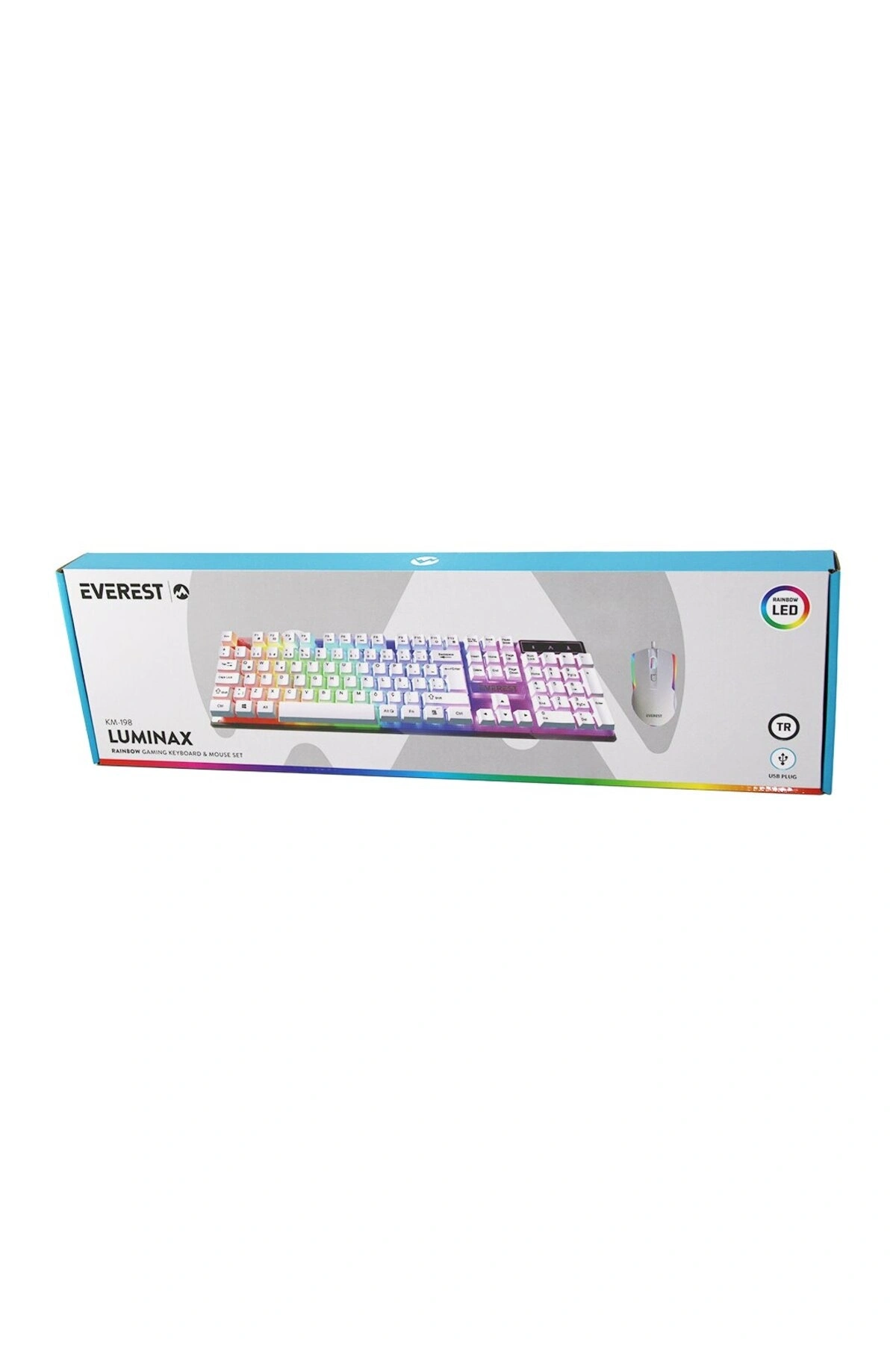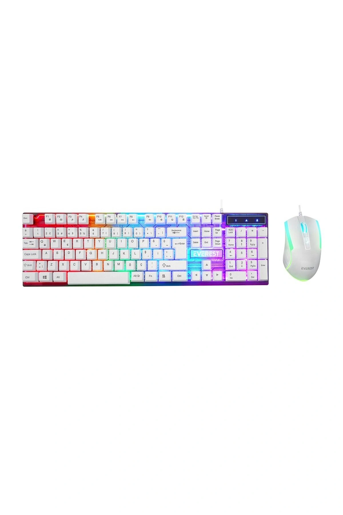BEYAZ GÖKKUŞAĞI IŞIKLI USB KABLOLU OYUNCU KLAVYE - MOUSE SET