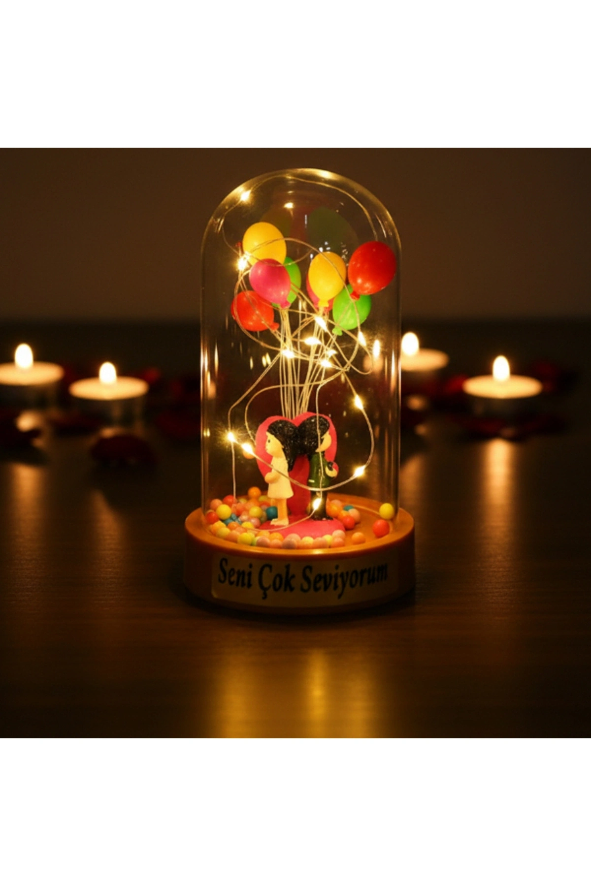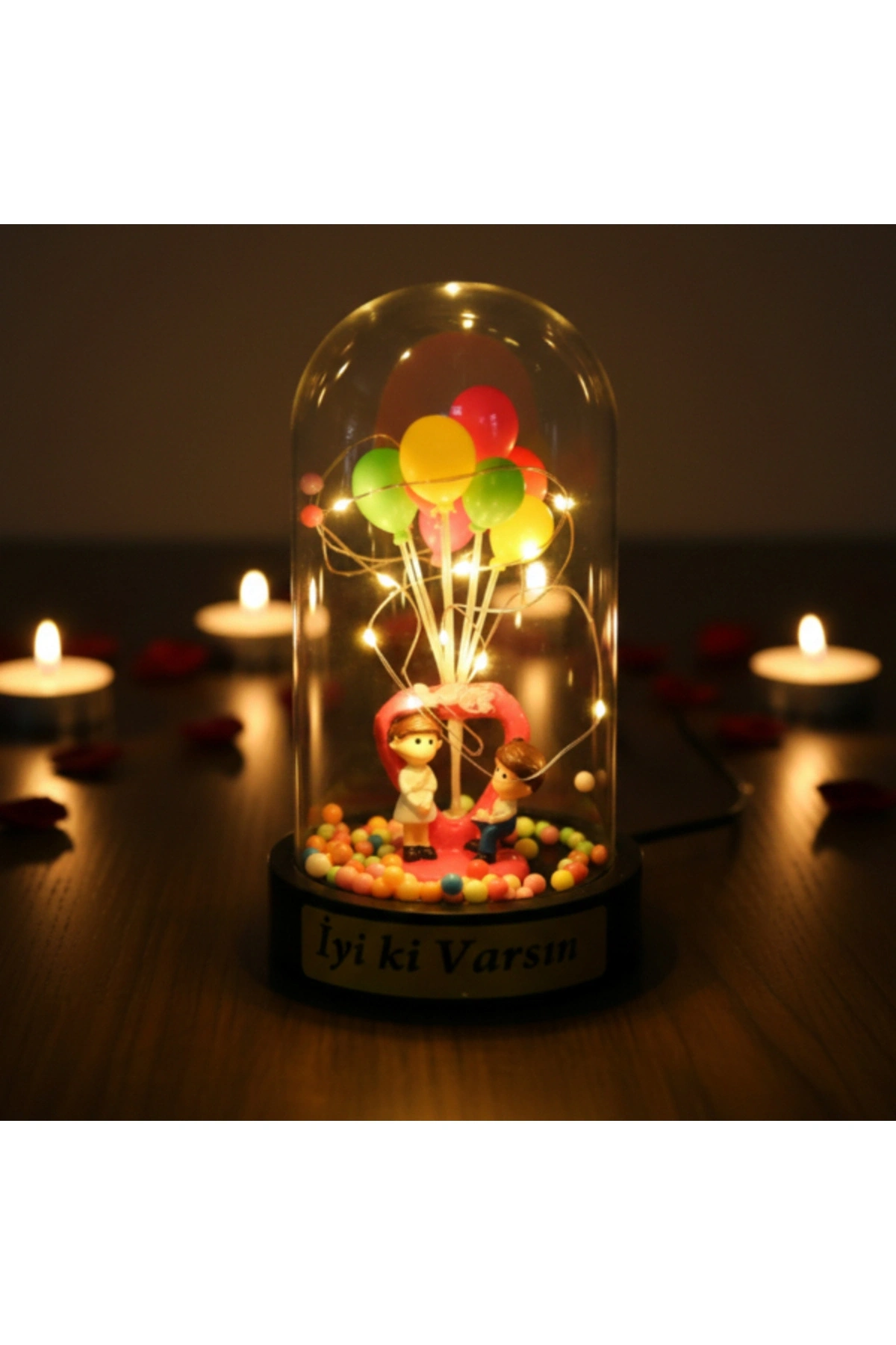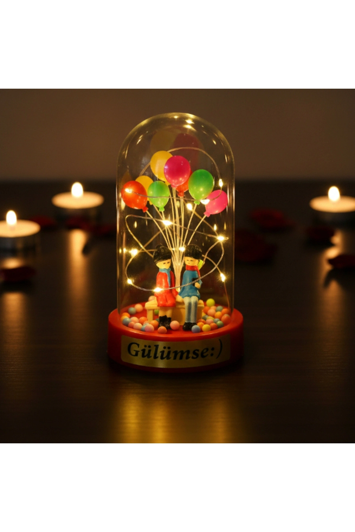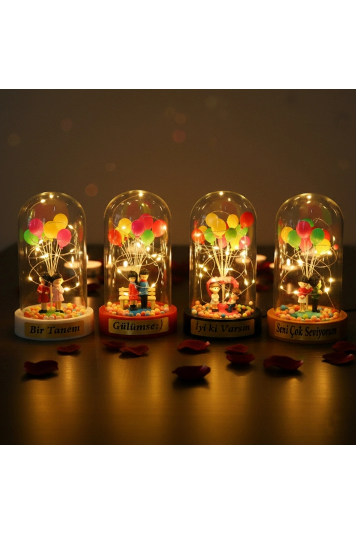 BİBLOLU BALONLU LEDLİ FANUSÜrün ÖzellikleriBiblolu balonlu ledli fanus, eğlenceli figürleri ve sıcak ışık etkisiyle yaşam alanlarına neşeli ve romantik bir ambiyans kazandıran dekoratif bir üründür. Şeffaf fanus içerisinde yer alan balonlu biblo figürleri, LED ışıklarla birlikte hareketli ve dikkat çekici bir görünüm sunar. Sahip olduğu gün ışığı LED aydınlatma sayesinde yumuşak ve huzur verici bir ışık yayarak masa, komodin ve raf üzerinde estetik bir atmosfer oluşturur. Kompakt ölçüsüyle yer kaplamadan kullanılabilen bu model, özel günlerde dekoratif hediyelik fanus arayanlar için ideal bir tercihtir. Model seçimi yapılamayan ürün, görsellerde yer alan tasarımlardan biri olacak şekilde karışık model gönderimi yapılmaktadır.Ürün Teknik Özellikleri Özellik Açıklama Ürün Adı Biblolu Balonlu Ledli Fanus Boyut 10 x 18 cm Aydınlatma Gün ışığı LED Tasarım Şeffaf fanus, balonlu biblo figürleri Model Karışık gönderilir Kullanım Alanı Masa, komodin, raf Kullanım Amacı Dekoratif ve hediyelik Paket İçeriği1 adet biblolu balonlu ledli fanus