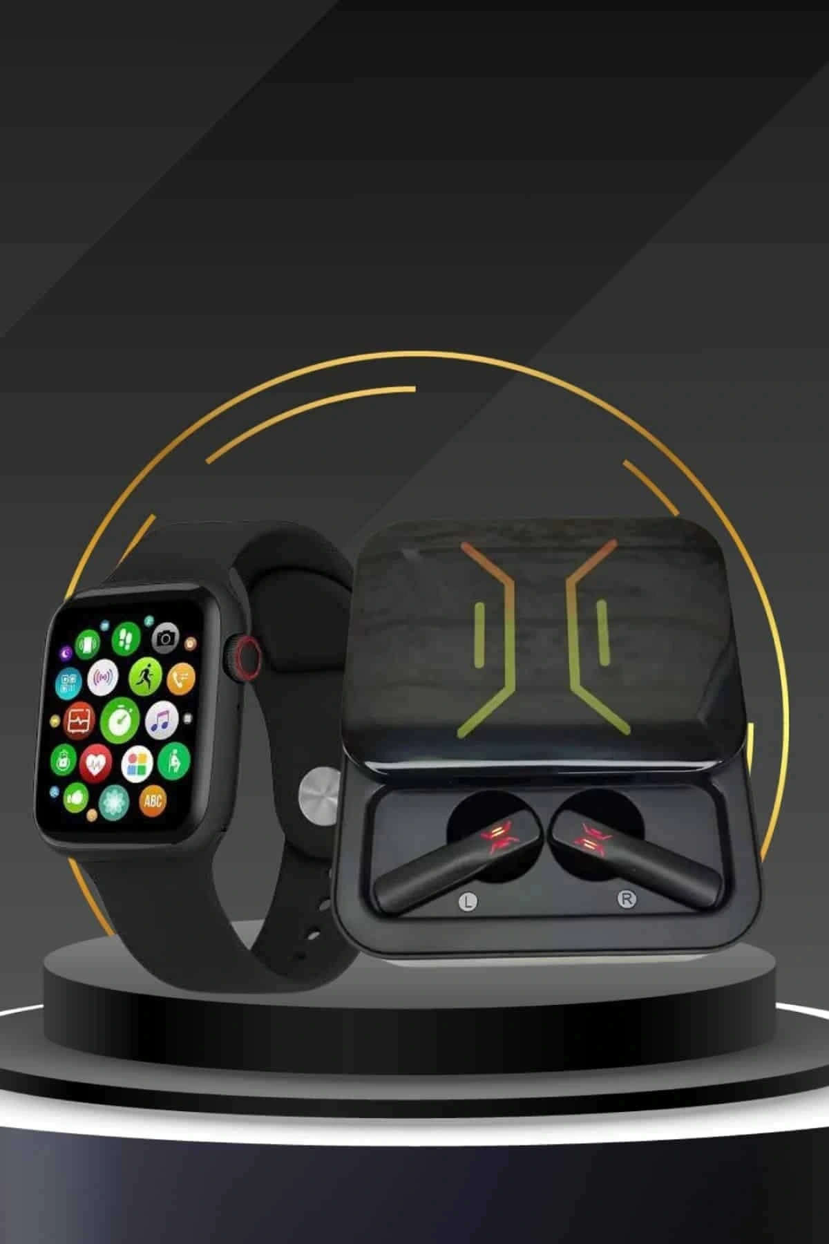 KULAKLIK:Dokunmatik kontrol özelliği sayesinde müziklerinizi ve çağrılarınızı kolayca yönetebilirsiniz. Dahili mikrofonu ile net görüşmeler yaparak, eller serbest deneyiminin keyfini çıkarın. Suya ve tere karşı dayanıklı yapısı sayesinde, spor aktivitelerinizde veya yağmurlu havalarda rahatlıkla kullanabilirsiniz. Çift telefon desteği ile iki cihaz arasında kesintisiz geçiş yaparak, bağlantıda kalın. Aktif gürültü engelleme (ANC) teknolojisi ile dış dünyanın gürültüsünü filtreleyerek, müziğinize tam odaklanabilirsiniz.AKILLI SAAT:Bu akıllı saat, modern teknoloji ile günlük hayatınızı kolaylaştıracak özellikleri bir araya getiren yenilikçi bir cihazdır. Tüm iOS ve Android akıllı telefonlarla uyumlu olan bu saat, geniş bir kullanıcı kitlesine hitap eder. Siri sesli asistan desteği sayesinde sesli komutlarla işlemlerinizi hızlıca gerçekleştirebilirsiniz. Bluetooth bağlantısı aracılığıyla çağrı yapma, çağrılara cevap verme veya reddetme, sık görüşülenler listesini yönetme, çağrı geçmişini görüntüleme ve arayan kimliğini görme gibi birçok özelliği destekler. Ayrıca, SMS ve diğer uygulamalardan gelen bildirimleri görüntüleme ve okuma imkanı sunar.44 mm paslanmaz çelik kasası, dayanıklılığı ve şıklığı bir arada sunar. 240x285 piksel çözünürlükteki, köşeden köşeye tam gelişmiş dokunmatik OLED ekranı, parlak ve net bir görüntü deneyimi sağlar. 280 mAh Li-Po bataryası, uzun süreli kullanım sunarak gün boyu yanınızda olmasını garanti eder. 128 MB bellek kapasitesi ve aktif iki yan tuşuyla kullanıcı dostu bir arayüz sunar.Sağlık ve spor odaklı özellikleriyle öne çıkan bu cihaz, günlük aktivitelerinizi ve sağlık durumunuzu takip etmenize yardımcı olur. Pedometre özelliğiyle egzersiz süresi, kat edilen mesafe ve yakılan kalori gibi verilere ulaşabilirsiniz. EKG, kan basıncı, tansiyon ölçümü ve kandaki oksijen oranını ölçme gibi üçlü sağlık takibi özellikleri sayesinde sağlığınızı yakından izleyebilirsiniz. Uyku takibi, hava durumu, kronometre, alarm, çağrı hatırlatma, hareketsizlik ve su içme hatırlatmaları gibi işlevlerle hayatınızı kolaylaştırır.Spor severler için, koşu, bisiklet, kuvvet antrenmanı, basketbol, tenis, voleybol ve futbol gibi çoklu spor modları sunar. Veri (DATA) sekmesi sayesinde günlük ve anlık sağlık verilerinizi analiz edebilirsiniz. Uygulama üzerinden sınırsız saat kadranı seçebilir ve ekranınıza dilediğiniz fotoğrafı yerleştirebilirsiniz. Akıllı bileklik hareket sensörü, ekranın kolayca açılıp kapanmasını sağlar.10 kişiye kadar hızlı arama özelliği, değiştirilebilir kordon seçeneği ve Türkçe dahil 23 farklı dil desteğiyle kişiselleştirilebilir bir deneyim sunar. Uçak modu ve rahatsız etme modu gibi işlevlerle kullanımınızı daha verimli hale getirebilirsiniz. Saat üzerinden müzik dinleme, uzaktan fotoğraf çekme gibi eğlenceli özellikler de cihazın dikkat çeken detayları arasındadır.Şıklığı, dayanıklılığı ve fonksiyonelliği bir araya getiren bu akıllı saat, hem teknoloji tutkunları hem de aktif bir yaşam tarzını benimseyen kullanıcılar için mükemmel bir tercihtir.