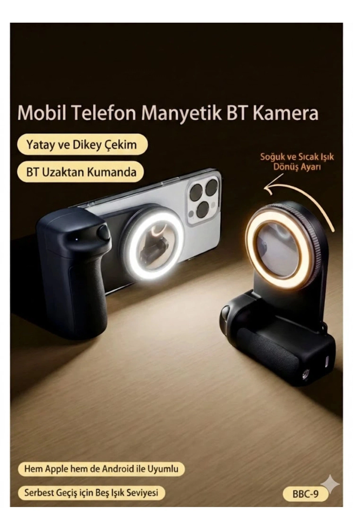 Profesyonel Çekimler İçin İdealDahili LED dolgu ışığı sayesinde düşük ışık koşullarında bile net ve dengeli fotoğraflar çekmenizi sağlar.; Güçlü manyetik yapısı, telefonunuzu güvenle sabitleyerek titreşimsiz çekimler sunar.; Vlog çekimleri, sosyal medya içerikleri, canlı yayınlar ve grup fotoğrafları için mükemmel bir çözümdür.; Teknik ÖzelliklerRenk: SiyahMalzeme: Dayanıklı plastikPil Kapasitesi: 750mAhŞarj Girişi: Type-CVoltaj: DC 5V–9VAkım: 0.5ABoyut: 117 × 83 × 40 mmVida Girişi: 1/4 inçKullanım AlanlarıSelfie ve vlog çekimleriCanlı yayınlarÜrün fotoğrafçılığıSosyal medya içerik üretimiVideo konferanslarÖne Çıkan ÖzelliklerBluetooth Uyumlu: 2 saniyede hızlı bağlantı ve kablosuz çekim kontrolüAyarlanabilir LED Dolgu Işığı: Soğuk–sıcak ışık geçişi ve 5 farklı parlaklık seviyesiManyetik Sabitleme: Güçlü mıknatıs ile güvenli ve sağlam tutuşErgonomik Kamera Kolu: Kaymaz yüzey, titreşimi minimuma indirir1/4” Vida Girişi: Tripod ve selfie çubuğu ile tam uyumGeniş Uyumluluk: iPhone 16 / 15 / 14 serisi ve Android cihazlarla uyumlu