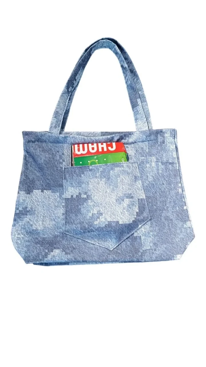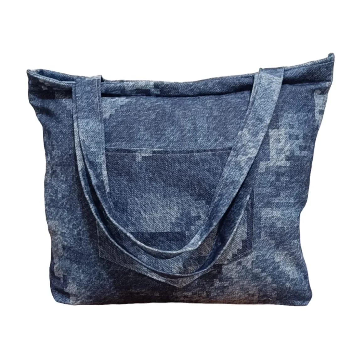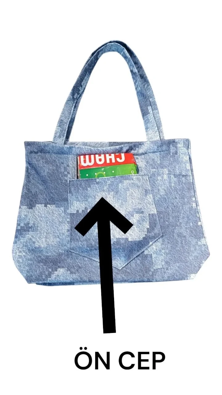 Blujin Desenli Piknik ve Deniz Cepli Fermuarlı Çanta - Mavi