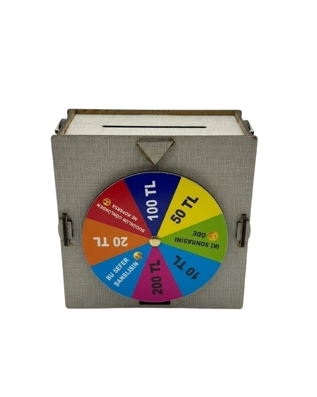 Dekoratif şans çarklı kumbara, tasarrufu eğlenceli hale getiren ve kullanıcıya farklı bir deneyim sunan özel bir üründür. Üzerinde bulunan şans çarkı sayesinde her kullanımda farklı bir sonuç elde edilir ve bu da kullanıcıyı motive eder. Para biriktirme sürecini oyunlaştırarak daha keyifli hale getirir.Geniş iç hacmi sayesinde uzun süreli kullanım sağlar. Dayanıklı malzeme yapısı ile uzun ömürlüdür.Çocuklar ve yetişkinler için uygundur. Eğlenceli yapısı ile dikkat çeker ve tasarrufu alışkanlık haline getirir.Modern ve şık tasarımı ile dekoratif bir ürün olarak da kullanılabilir.