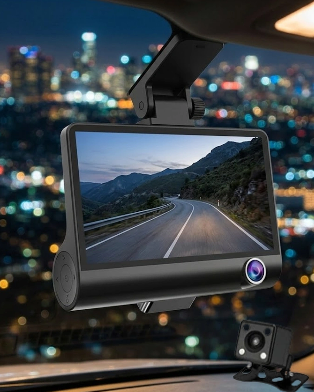 Araç içi güvenliği üst seviyeye taşımak isteyen kullanıcılar için tasarlanan çift kameralı araç kamerası, Full HD 1080P görüntü kalitesi ile yolculuklarınızı yüksek netlikte kayıt altına alır. Ön ve arka kamera desteği sayesinde hem sürüş esnasında hem de arka alan kontrolünde maksimum güvenlik sağlar. 170° geniş açı lens teknolojisi, kör noktaları minimuma indirerek daha geniş bir görüş alanı sunar. 4.0 inç LCD ekranı sayesinde anlık görüntüleri rahatça izleyebilir, kayıtları doğrudan cihaz üzerinden kontrol edebilirsiniz. WDR (Wide Dynamic Range) teknolojisi sayesinde ışık dengesini otomatik ayarlar; gündüz parlak güneş ışığında veya gece düşük ışıkta net ve dengeli görüntü elde etmenizi sağlar. Gece görüş özelliği, karanlık ortamlarda dahi plaka ve yol detaylarını görünür kılar. Döngüsel kayıt özelliği sayesinde hafıza dolduğunda eski kayıtları otomatik olarak siler ve kesintisiz kayıt sağlar. microSD kart desteği 32 GB’a kadar kapasite sunar. G-sensör (darbe sensörü) ani çarpışma anında kaydı otomatik olarak koruma altına alır ve silinmesini engeller. Park modu ve hareket algılama özellikleri sayesinde araç park halindeyken de güvenlik sağlar. Dahili mikrofon ile ses kaydı yapılabilir. 12V araç çakmak soketi ile kolay kurulum sağlanır. Ön cama vantuzlu montaj aparatı sayesinde pratik şekilde sabitlenir. Araç kamerası, oto kamera, çift lens araç içi kamera, gece görüşlü araç DVR ve park modu kamerası arayan kullanıcılar için ideal bir çözümdür.