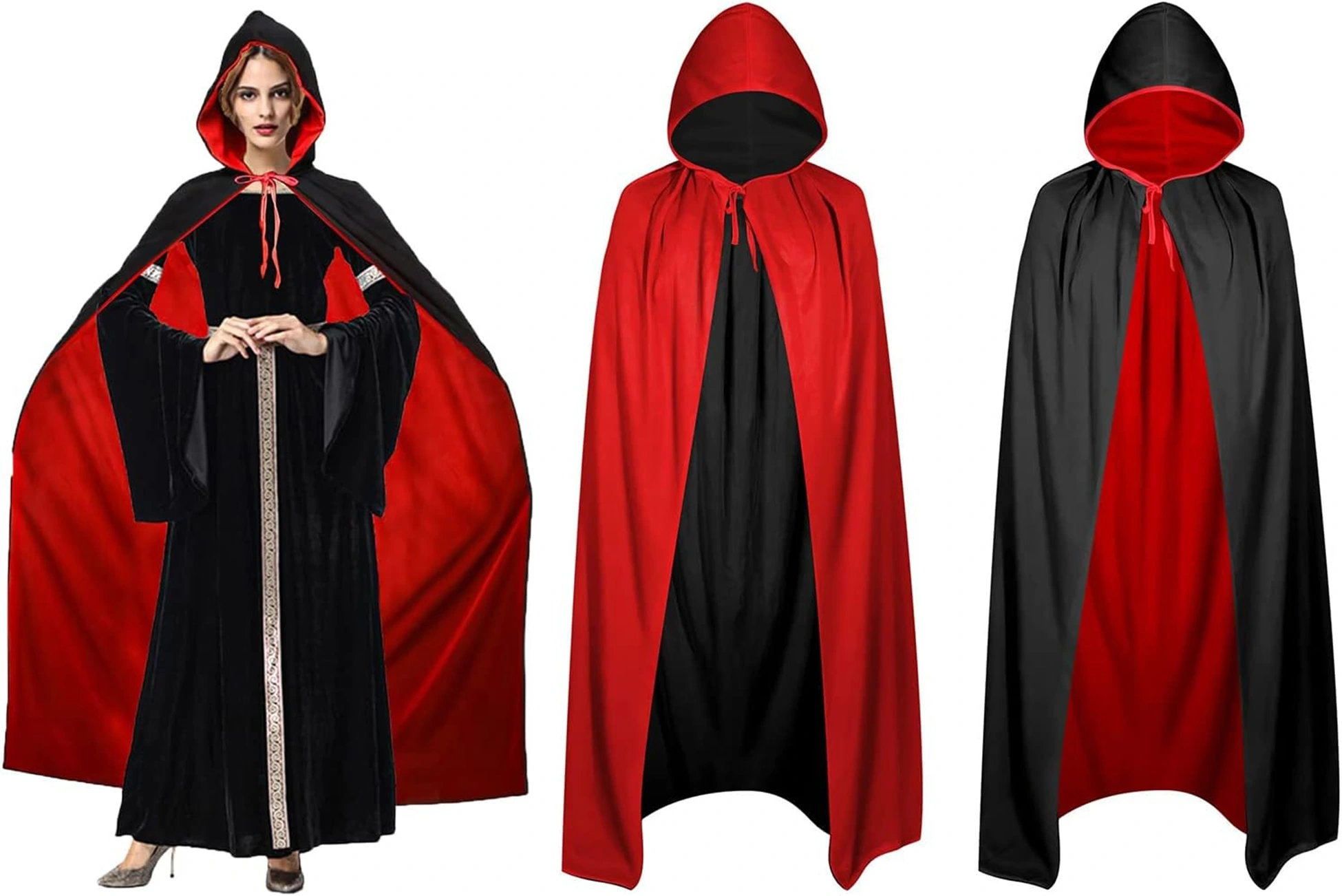 Çift Taraflı Kullanılabilir Siyah Kırmızı Kapişonlu Pelerin 140 cm Yetişkin, kostüm partileri, cosplay veya diğer özel günlerde eğlenceli ve gizemli bir görünüm elde etmek isteyenler için mükemmel bir seçimdir. Siyah ve kırmızı olmak üzere iki farklı rengi ile kullanılabilen bu pelerin, size birçok farklı kostüm seçeneği sunar. Kapüşonu ve uzun boyu ile de gizemli bir hava katacaktır.