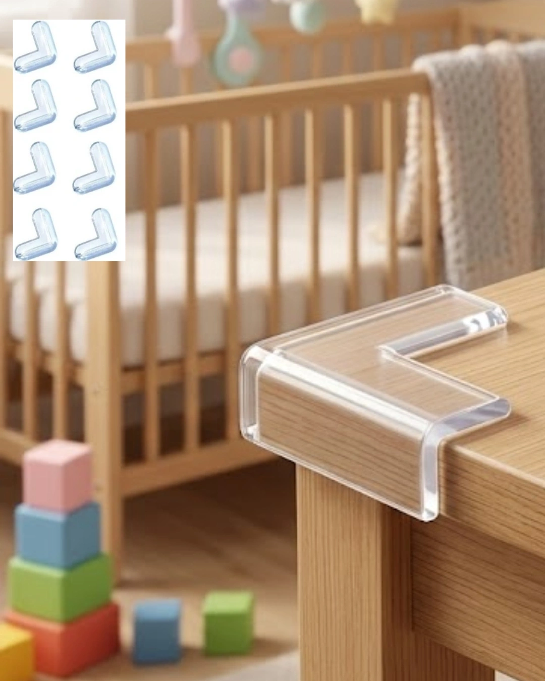 Mobilya köşe koruyucu seti, ev içerisinde masa ve sehpa köşelerinden kaynaklanabilecek kazaların önüne geçmek için tasarlanmış kullanışlı bir güvenlik ürünüdür. Özellikle bebekli ve çocuklu evlerde güvenli bir yaşam alanı oluşturmak için tercih edilir. Yumuşak silikon içerikli plastik materyal darbe emici özelliğe sahiptir. Bu sayede çarpma durumlarında yaralanma riskini azaltmaya yardımcı olur. Şeffaf tasarımı sayesinde mobilya görünümünü bozmaz ve estetik bir kullanım sunar. 8 adet köşe koruyucu içeren paket sayesinde birden fazla masa veya sehpa için kullanılabilir.
