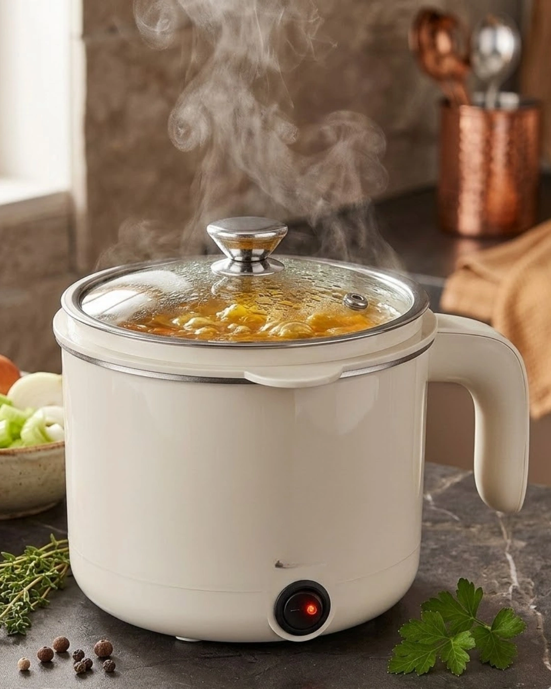 Çok amaçlı elektrikli pişirici, mutfakta pratik ve hızlı yemek hazırlamak isteyen kullanıcılar için tasarlanmış kullanışlı bir mutfak cihazıdır. Kompakt tasarımı sayesinde mutfakta fazla yer kaplamaz ve günlük yemek hazırlıklarında büyük kolaylık sağlar. Özellikle küçük mutfaklar, öğrenci evleri, ofis kullanımı veya pratik yemek hazırlamak isteyen kullanıcılar için oldukça ideal bir üründür. 1 litre kapasiteye sahip olan bu elektrikli pişirici, tek seferde yeterli miktarda yemek hazırlamanıza imkan tanır. Çorba, pilav, makarna, sebze yemekleri ve yumurta haşlama gibi birçok farklı yemek türünü kolaylıkla hazırlayabilirsiniz. Çok amaçlı kullanım özelliği sayesinde tek bir cihaz ile farklı yemekler hazırlamak mümkündür. Ürün ile birlikte sunulan buharda pişirme tepsisi sayesinde sebzeleri sağlıklı bir şekilde buharda pişirebilirsiniz. Buharda pişirme yöntemi, yiyeceklerin besin değerlerini koruyarak daha sağlıklı yemekler hazırlamanıza yardımcı olur. Bu özellik özellikle sağlıklı beslenmeye önem veren kullanıcılar için oldukça avantajlıdır. Paslanmaz gizli rezistans sistemi sayesinde ısı eşit şekilde dağıtılır ve yemekler dengeli şekilde pişer. Gizli rezistans tasarımı aynı zamanda cihazın temizliğini de kolaylaştırır. Geniş ağız tasarımı sayesinde iç hazneye kolayca ulaşabilir ve kullanım sonrasında rahat bir şekilde temizleyebilirsiniz. Temperli cam kapak sayesinde yemeklerin pişme sürecini rahatlıkla takip edebilirsiniz. Dayanıklı cam kapak yapısı hem güvenli kullanım sağlar hem de uzun ömürlüdür. Işıklı açma kapama düğmesi sayesinde cihazı kolay şekilde kontrol edebilirsiniz. Ayrıca aşırı ısınma ve susuz çalışmayı önleyen emniyet sistemi sayesinde güvenli bir kullanım sunar.