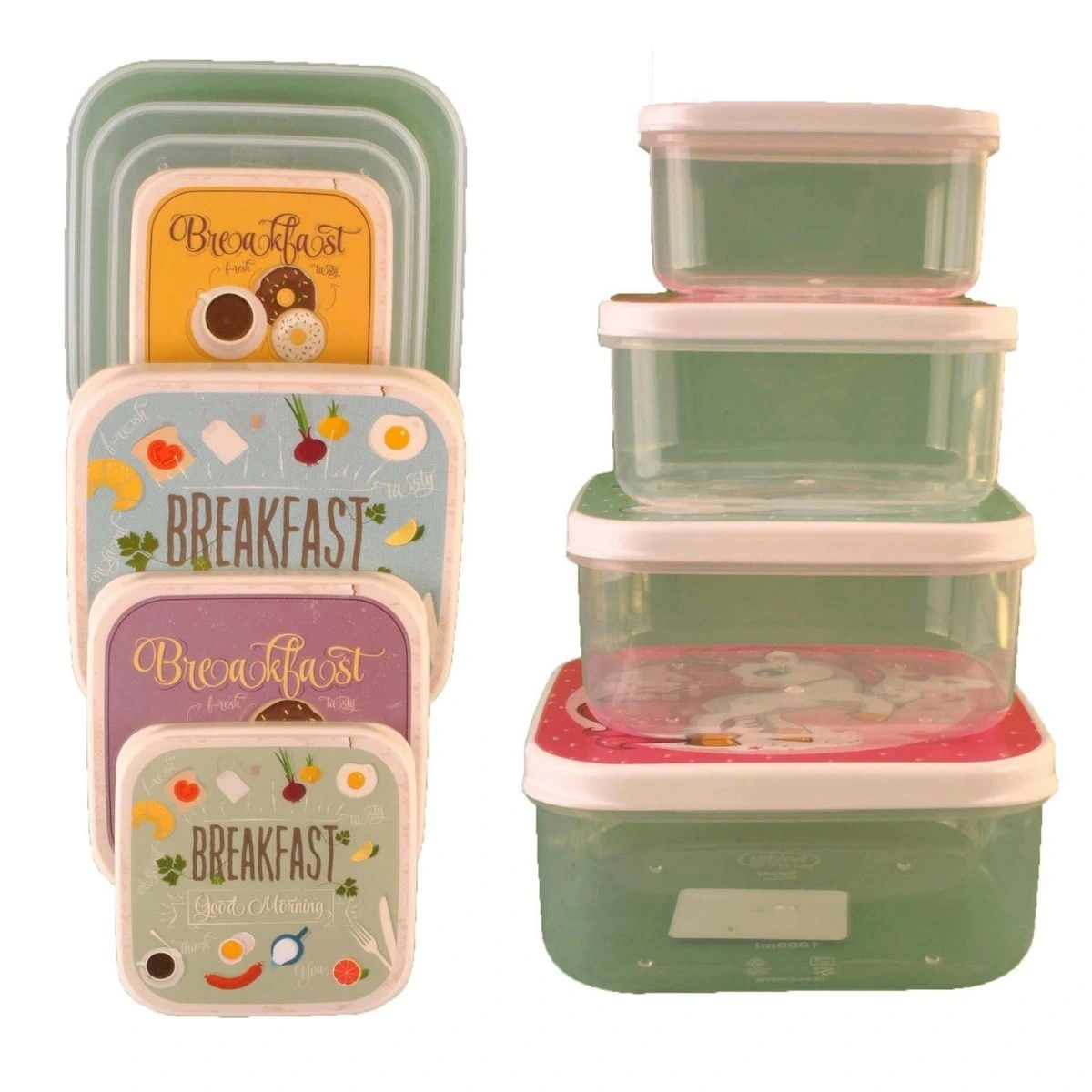Son derece sempatik tasarımlı kapaklara sahip iç içe saklanabilen 4 farklı boyda saklama kaplarını çok seveceksiniz.