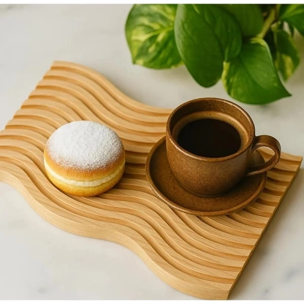 Dalgalı Çift Taraf Tasarımlı Ahşap Sunum Tepsisi