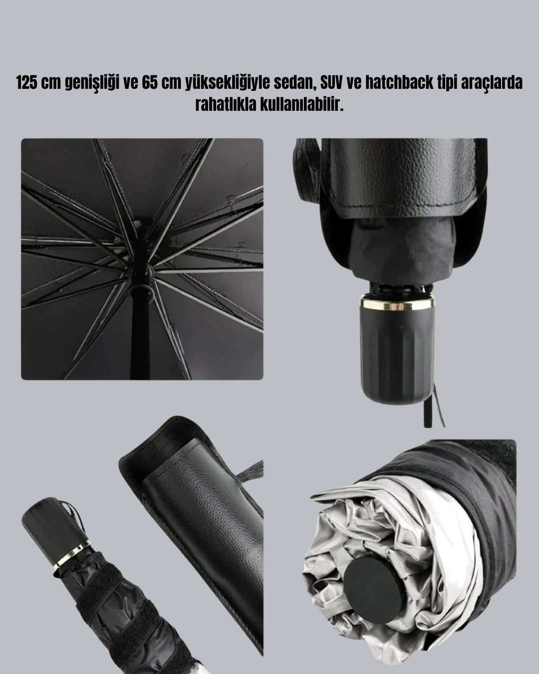 125 x 65 cm ölçüleriyle öne çıkan bu katlanabilir oto güneşlik, çok yönlü uyumluluğa sahiptir. Sedan, SUV ve hatchback araçlarla sorunsuz şekilde kullanılabilir. Aracınızın ön camını tamamen kaplayarak tam koruma sağlar.Yüksek kaliteli UPE alaşım gövdesiyle, uzun ömürlü bir kullanım sunar. Sıcak yaz günlerinde UV ışınlarına karşı etkin koruma sağlayan yansıtıcı yüzeyi ile aracın iç yüzeyleri güneşe karşı korunur.Şemsiye tarzı tasarımıyla saniyeler içinde açılır ve yerleştirilir. Katlanabilir formu sayesinde özel çantasına konularak kolayca saklanabilir. Hem kullanım hem de taşıma açısından son derece pratiktir.Aracınızın iç sıcaklığını ciddi oranda düşürür, klima ihtiyacını azaltır ve yakıt tasarrufuna katkıda bulunur. Aynı zamanda iç yüzeylerin renklerinin solmasını ve malzemelerin bozulmasını engeller.Paket içeriği: 1 adet güneşlik, 1 adet saklama çantasıFonksiyonel, sağlam ve modern bir güneş koruma çözümüdür.
