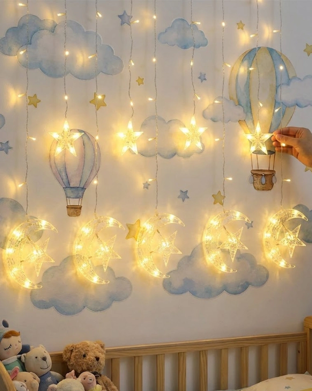 Hilal ve yıldız figürlü bu ışık zinciri, zarif detayları ve ince işçiliğiyle dikkat çeker. Figürlerin tasarımı sade ama etkileyici bir görünüme sahiptir. Mekâna yerleştirildiğinde dekorun merkez noktası haline gelir. Yüksek kaliteli plastik malzeme ve PVC kaplamalı kablo yapısı sayesinde hem sağlam hem de güvenlidir. Isıya dayanıklı yapısı sayesinde uzun süreli kullanımlarda performans kaybı yaşanmaz. Güvenli tasarım anlayışı ile üretilmiştir ve dekoratif kullanım için uygundur. Sabit ve yanıp sönen iki farklı ışık modu sayesinde kullanım amacınıza göre tercih yapabilirsiniz. Ev dekorasyonundan organizasyon süslemelerine kadar geniş bir kullanım alanı sunar. Salon, yatak odası, çocuk odası, balkon, restoran ve vitrin dekorasyonlarında rahatlıkla kullanılabilir. Özellikle loş ortamda verdiği sıcak ışık, mekânı daha davetkâr ve huzurlu hale getirir.