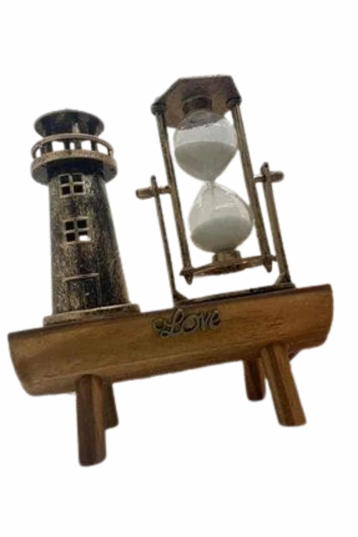 Deniz fenerlerinin huzur veren sessizliğini ve değirmenlerin dingin dönüşünü hatırlatan bu özel dekoratif ürün, yanında yer alan kum saatiyle zamanı adeta yavaşlatır ve size anın keyfini doyasıya yaşama imkânı sunar. Hayatın karmaşasından uzaklaşmak, sevdiklerinizle geçirdiğiniz kıymetli anları daha derin hissetmek ve küçük mutlulukları büyütmek isteyenler için anlamlı bir seçimdir. Ahşap malzemesiyle doğallığı yaşam alanlarınıza taşıyan bu tasarım, bulunduğu ortama sıcak ve samimi bir dokunuş kazandırır. Retro çizgileriyle nostaljik bir atmosfer yaratarak, geçmişin güzel anılarını bugünün estetiğiyle buluşturur. Tek parça olarak sunulan yapısıyla kolayca yerleştirilip kullanıma hazır hale gelir; ekstra montajla uğraşmanıza gerek kalmadan, huzur ve zarafeti bir araya getirir. İster kendiniz için keyifli bir köşe oluşturun, ister sevdiklerinize anlamlı bir hediye olarak sunun; bu ürün her haliyle hayatınıza değer katar.