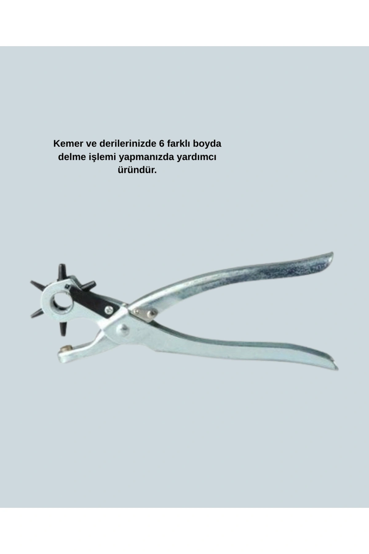 Pense, yüksek kaliteli metal malzemeden üretilmiş olup uzun yıllar deformasyon göstermeden kullanılabilir.; Çelik mekanizması sayesinde darbeye dayanıklı ve esneme yapmayan bir gövde sunar.; Bu da deliklerin daha düzgün ve net açılmasını sağlar.; Döner başlığı sıkı geçmeli yapıdadır; işlem sırasında kaymaz veya boşluk oluşturmaz.; Bu sayede aynı boyutta, pürüzsüz ve temiz delikler elde edilir.; Ayakkabı tamirinden kemer delme işlemine kadar tüm zorlu uygulamalarda güvenle kullanılabilir.