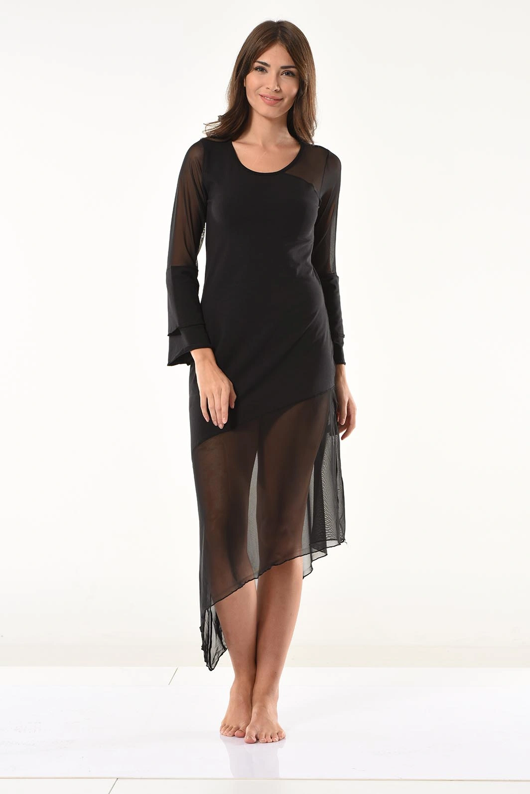 Derya Kurşun Transparan Detaylı Uzun Elbise 958