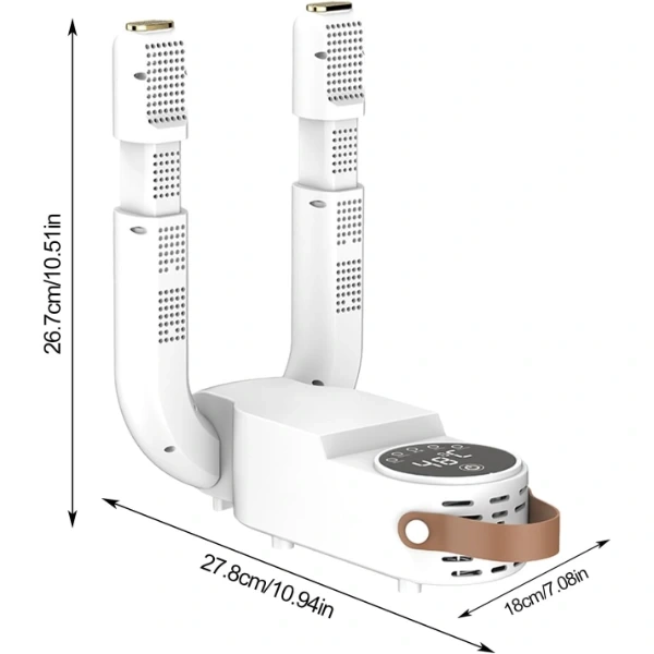 DİJİTAL AYAKKABI KURUTMA VE ISITMA MAKİNESİÜrün ÖzellikleriTeknoloji ve konforu bir araya getiren Dijital Ayakkabı Kurutma ve Isıtma Makinesi, ayakkabılarınızı kısa sürede hijyenik bir şekilde kurutur ve istenmeyen kokuları ortadan kaldırır. Eşsiz ısı dağılımı sağlayan gözenekli tasarımı sayesinde 360° sıcak hava sirkülasyonu oluşturur, böylece ayakkabı ve çoraplarınızı eşit şekilde kurutur.Dijital ekran üzerinden sıcaklık ve süre ayarı yapılabilir, bu sayede hassas kumaşlı ayakkabılar güvenle kurutulabilir. Sessiz çalışmasıyla rahatsızlık vermez ve enerji tasarrufludur. Sadece ayakkabılar değil, eldiven, bere ve çorap gibi eşyalar için de kullanılabilir. 27.8x26.7x18 cm boyutuyla kompakt tasarımıyla kolay taşınabilir ve yer kaplamaz.Paket İçeriği1 adet Dijital Ayakkabı Kurutma Ve Isıtma Makinesi