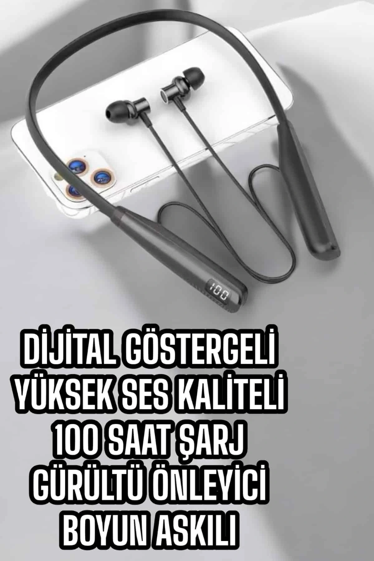Dijital Göstergeli Kulak İçi Kablosuz Bluetooth Kulaklık Boyun Bantlı
