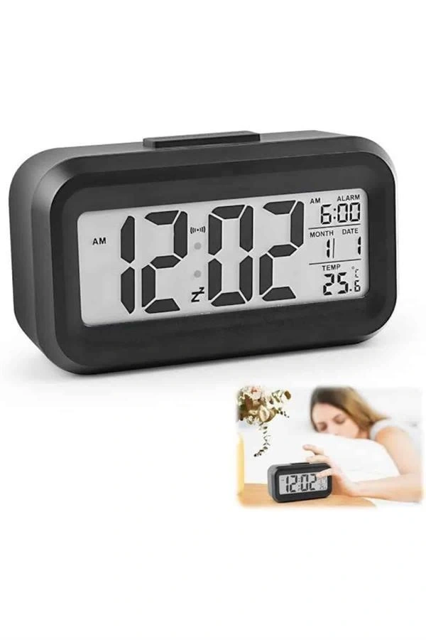 Şık ve kullanışlı tasarımıyla öne çıkan bu dijital masa saati, modern yaşam alanları için hem dekoratif hem de işlevsel bir çözüm sunar. Geniş dijital ekranı sayesinde saati, tarihi ve ortam sıcaklığını kolaylıkla görebilir; özellikle düşük ışıklı ortamlarda dahi ekranı net bir şekilde takip edebilirsiniz. Otomatik ışık sensörü sayesinde karanlıkta ekran kendiliğinden aydınlanır ve bu özellik gerektiğinde manuel olarak da aktive edilebilir. Aydınlatma sistemi, kısa süreli yanarak gereksiz enerji tüketiminin önüne geçer ve göz yormayan bir kullanım sağlar.Alarmlı yapısıyla sabahları zamanında uyanmanıza yardımcı olan bu saat, aynı zamanda tarih ve derece göstergeleriyle de gün boyu ihtiyacınız olan temel bilgileri sunar. Kompakt ölçüleri sayesinde çalışma masanızda, baş ucunuzda ya da ofis ortamında rahatlıkla yer bulabilir. Ayrıca sessiz çalışmasıyla gece boyunca rahatsızlık vermez.Ürün 4,3 x 15,1 x 7,7 cm boyutlarındadır ve 3 adet AA pil ile çalışır (piller dahil değildir). Kutusunda 1 adet fotoselli dijital masa saati bulunmaktadır. Pratikliği ve modern görünümüyle hem ev hem ofis kullanımı için ideal bir yardımcıdır.
