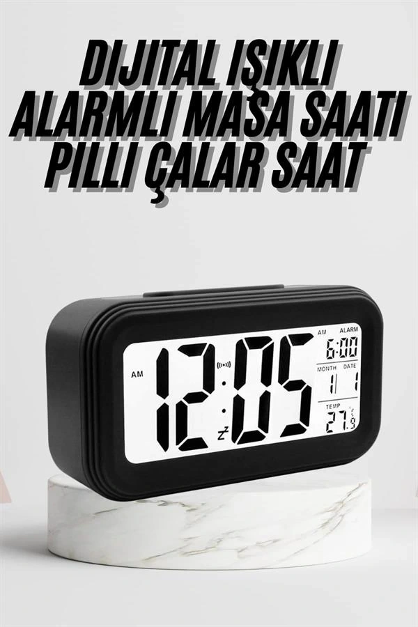 Pratik kullanımı ve şık tasarımıyla öne çıkan bu dijital masa saati, her anı planlamanıza yardımcı olmak için ideal bir çözümdür. Büyük LCD ekranı sayesinde saati, tarihi ve sıcaklık bilgilerini rahatlıkla takip edebilirsiniz. Kararmış ortamlarda dahi ekranın otomatik olarak aydınlanması, saatin her koşulda net bir şekilde görünmesini sağlar. 6 saniye sonra kendiliğinden sönen ışık özelliği, gözlerinizi rahatsız etmeden enerji tasarrufu sağlar.Alarm fonksiyonu sayesinde sabahları rahatça uyanabilir, güne dinç başlayabilirsiniz. Ayrıca, tarih ve ortam sıcaklığı bilgilerini aynı anda görüntüleyebilmeniz, günlük planlamanızı kolaylaştırır. Kompakt ve şık tasarımı, ofis veya ev ortamında rahatlıkla kullanılmasını sağlar.Ürün ölçüleri 4,3 x 15,1 x 7,7 cm olup, 3 adet AA pil ile çalışır (piller dahil değildir). Paket içeriğinde bir adet dijital masa saati bulunmaktadır. Hem estetik hem de fonksiyonel özellikleri ile hayatınıza pratiklik katacak bu saat, günlük kullanım için mükemmel bir tercihtir.