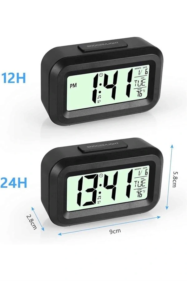 Şık ve kullanışlı tasarımıyla öne çıkan bu dijital masa saati, modern yaşam alanları için hem dekoratif hem de işlevsel bir çözüm sunar. Geniş dijital ekranı sayesinde saati, tarihi ve ortam sıcaklığını kolaylıkla görebilir; özellikle düşük ışıklı ortamlarda dahi ekranı net bir şekilde takip edebilirsiniz. Otomatik ışık sensörü sayesinde karanlıkta ekran kendiliğinden aydınlanır ve bu özellik gerektiğinde manuel olarak da aktive edilebilir. Aydınlatma sistemi, kısa süreli yanarak gereksiz enerji tüketiminin önüne geçer ve göz yormayan bir kullanım sağlar.Alarmlı yapısıyla sabahları zamanında uyanmanıza yardımcı olan bu saat, aynı zamanda tarih ve derece göstergeleriyle de gün boyu ihtiyacınız olan temel bilgileri sunar. Kompakt ölçüleri sayesinde çalışma masanızda, baş ucunuzda ya da ofis ortamında rahatlıkla yer bulabilir. Ayrıca sessiz çalışmasıyla gece boyunca rahatsızlık vermez.Ürün 4,3 x 15,1 x 7,7 cm boyutlarındadır ve 3 adet AA pil ile çalışır (piller dahil değildir). Kutusunda 1 adet fotoselli dijital masa saati bulunmaktadır. Pratikliği ve modern görünümüyle hem ev hem ofis kullanımı için ideal bir yardımcıdır.