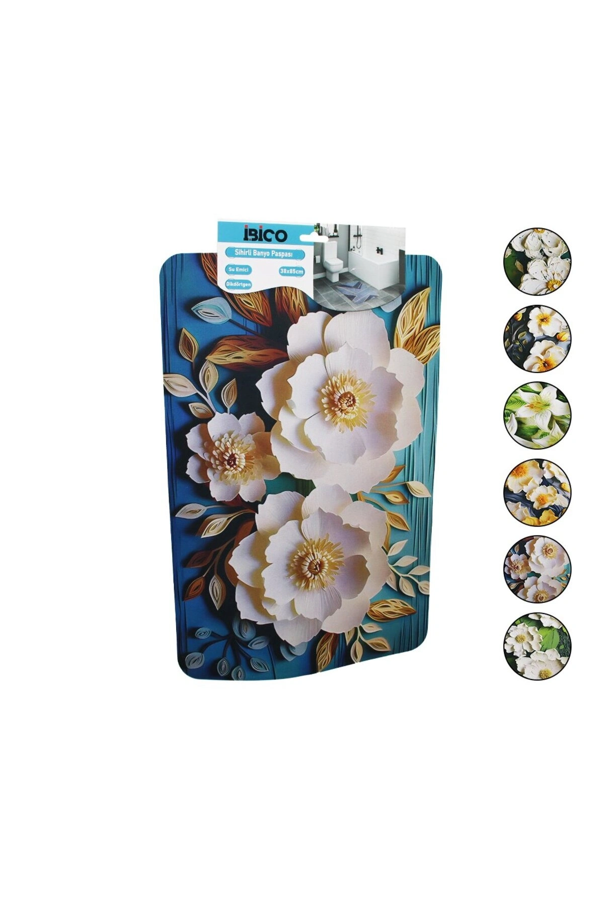 ÇİÇEK FİGÜRLÜ - RENKLİ 45X75CM SU EMİCİ - SİHİRLİ BANYO PASPASI ELASTİK (5324)