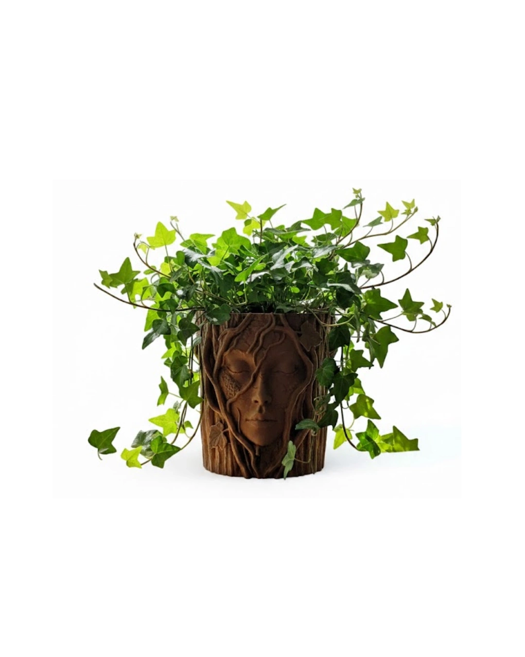 Doğa Temalı Yüz Detaylı Dekoratif Vazo 3D Ağaç Desenli Şık Saksı