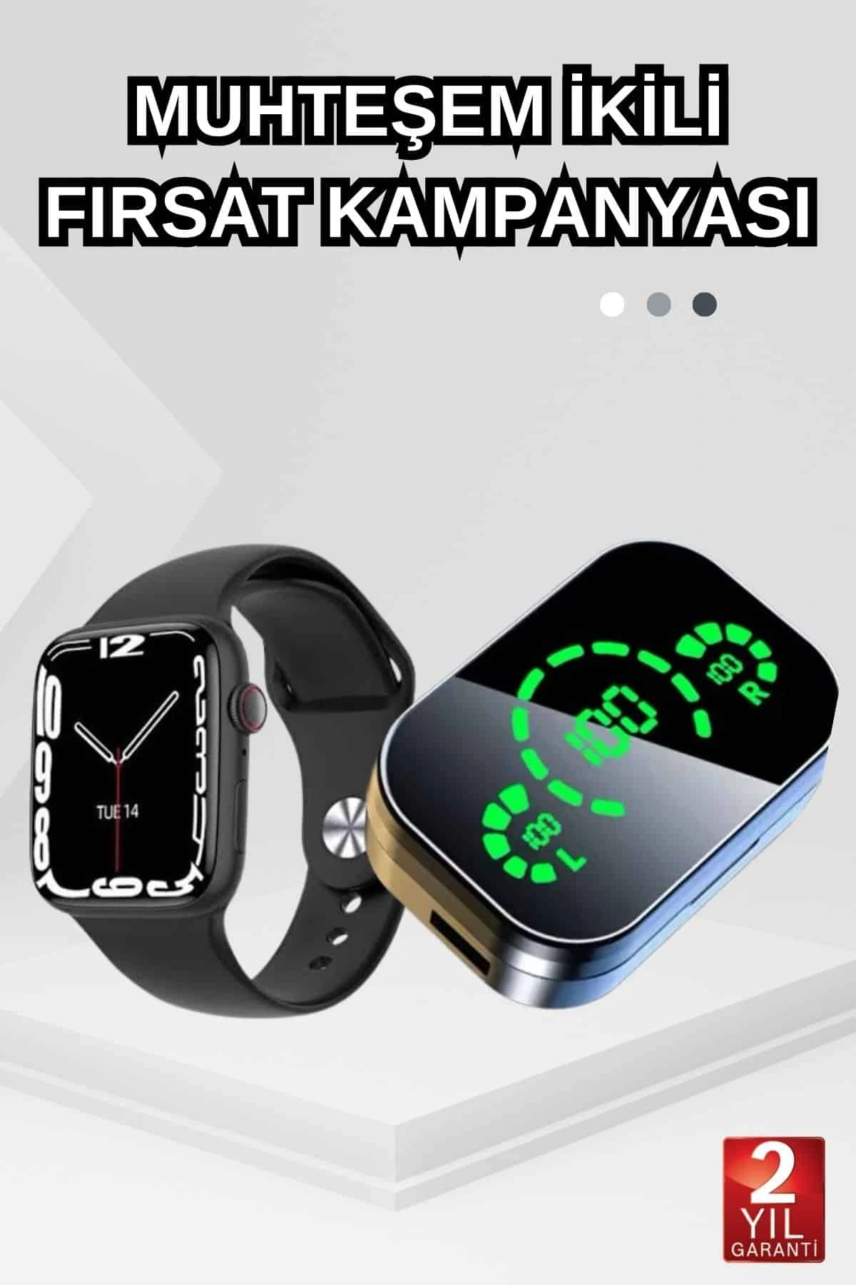 KULAKLIK:Dokunmatik kontrol özelliği sayesinde müziklerinizi ve çağrılarınızı kolayca yönetebilirsiniz. Dahili mikrofonu ile net görüşmeler yaparak, eller serbest deneyiminin keyfini çıkarın. Suya ve tere karşı dayanıklı yapısı sayesinde, spor aktivitelerinizde veya yağmurlu havalarda rahatlıkla kullanabilirsiniz. Çift telefon desteği ile iki cihaz arasında kesintisiz geçiş yaparak, bağlantıda kalın. Aktif gürültü engelleme (ANC) teknolojisi ile dış dünyanın gürültüsünü filtreleyerek, müziğinize tam odaklanabilirsiniz.AKILLI SAAT:Bu akıllı saat, modern teknoloji ile günlük hayatınızı kolaylaştıracak özellikleri bir araya getiren yenilikçi bir cihazdır. Tüm iOS ve Android akıllı telefonlarla uyumlu olan bu saat, geniş bir kullanıcı kitlesine hitap eder. Siri sesli asistan desteği sayesinde sesli komutlarla işlemlerinizi hızlıca gerçekleştirebilirsiniz. Bluetooth bağlantısı aracılığıyla çağrı yapma, çağrılara cevap verme veya reddetme, sık görüşülenler listesini yönetme, çağrı geçmişini görüntüleme ve arayan kimliğini görme gibi birçok özelliği destekler. Ayrıca, SMS ve diğer uygulamalardan gelen bildirimleri görüntüleme ve okuma imkanı sunar.44 mm paslanmaz çelik kasası, dayanıklılığı ve şıklığı bir arada sunar. 240x285 piksel çözünürlükteki, köşeden köşeye tam gelişmiş dokunmatik OLED ekranı, parlak ve net bir görüntü deneyimi sağlar. 280 mAh Li-Po bataryası, uzun süreli kullanım sunarak gün boyu yanınızda olmasını garanti eder. 128 MB bellek kapasitesi ve aktif iki yan tuşuyla kullanıcı dostu bir arayüz sunar.Sağlık ve spor odaklı özellikleriyle öne çıkan bu cihaz, günlük aktivitelerinizi ve sağlık durumunuzu takip etmenize yardımcı olur. Pedometre özelliğiyle egzersiz süresi, kat edilen mesafe ve yakılan kalori gibi verilere ulaşabilirsiniz. EKG, kan basıncı, tansiyon ölçümü ve kandaki oksijen oranını ölçme gibi üçlü sağlık takibi özellikleri sayesinde sağlığınızı yakından izleyebilirsiniz. Uyku takibi, hava durumu, kronometre, alarm, çağrı hatırlatma, hareketsizlik ve su içme hatırlatmaları gibi işlevlerle hayatınızı kolaylaştırır.Spor severler için, koşu, bisiklet, kuvvet antrenmanı, basketbol, tenis, voleybol ve futbol gibi çoklu spor modları sunar. Veri (DATA) sekmesi sayesinde günlük ve anlık sağlık verilerinizi analiz edebilirsiniz. Uygulama üzerinden sınırsız saat kadranı seçebilir ve ekranınıza dilediğiniz fotoğrafı yerleştirebilirsiniz. Akıllı bileklik hareket sensörü, ekranın kolayca açılıp kapanmasını sağlar.10 kişiye kadar hızlı arama özelliği, değiştirilebilir kordon seçeneği ve Türkçe dahil 23 farklı dil desteğiyle kişiselleştirilebilir bir deneyim sunar. Uçak modu ve rahatsız etme modu gibi işlevlerle kullanımınızı daha verimli hale getirebilirsiniz. Saat üzerinden müzik dinleme, uzaktan fotoğraf çekme gibi eğlenceli özellikler de cihazın dikkat çeken detayları arasındadır.Şıklığı, dayanıklılığı ve fonksiyonelliği bir araya getiren bu akıllı saat, hem teknoloji tutkunları hem de aktif bir yaşam tarzını benimseyen kullanıcılar için mükemmel bir tercihtir.