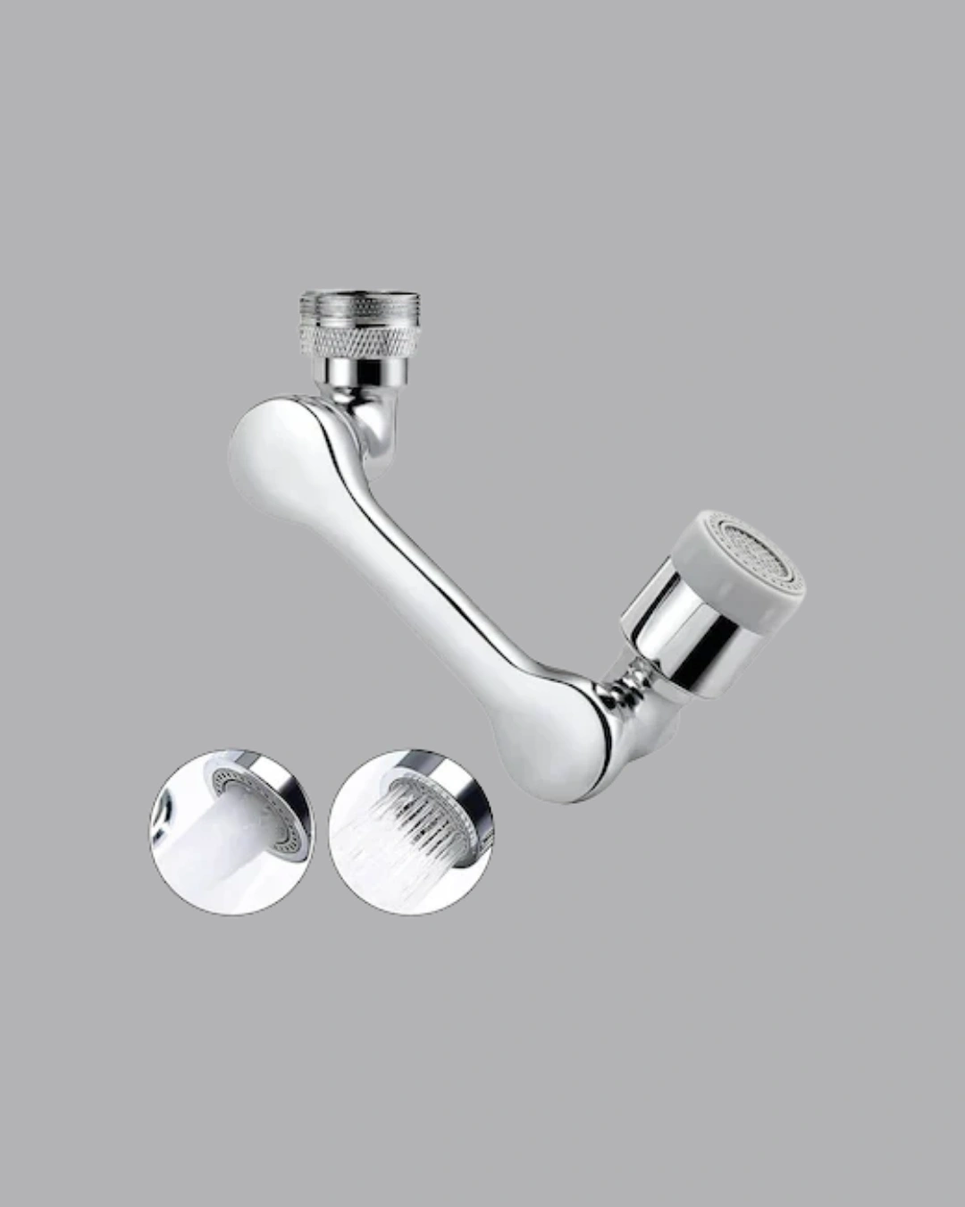 Evde pratik, hızlı ve rahat bir kullanım sağlamak isteyen herkes için geliştirilen 1080° dönebilen robotik kol musluk havalandırıcı, geleneksel muslukların ötesinde bir deneyim sunar. Üç segmentli yapısı, başlığı tüm yönlerde hareket ettirmeye olanak tanırken, toplamda 1080° dönme kapasitesi sayesinde su akışını en verimli şekilde kontrol edebilirsiniz. Bu sayede hem lavabonun her noktasına erişebilir hem de günlük hijyen rutininizi çok daha kolay hale getirebilirsiniz.Başlık, yukarı-aşağı 360°, sağa-sola 360° ve eklem üzerinden 360° olmak üzere üç farklı eksende dönebilir. Bu çok yönlü hareket, örneğin lavabonun kenarlarına su ulaştırmayı, ağız çalkalamayı, saç yıkamayı veya sebze temizlemeyi çok daha pratik hale getirir. Çocuklar veya hareket kısıtlılığı yaşayan kişiler için musluk kullanımında büyük kolaylık sağlar.Havalandırıcı uç, su akışını düzenleyerek sıçramayı azaltır ve daha verimli bir kullanım sunar. Böylece hem tasarruf sağlanır hem de çevrede su birikmesi engellenmiş olur. Yüksek kaliteli ABS + metal gövde, dayanıklılık ve uzun ömür sunar. Paslanmaya ve korozyona karşı dirençli yapısı sayesinde banyo ve mutfak gibi suyla sık temas eden alanlarda güvenle kullanılabilir.Montajı son derece basittir; ek alet gerektirmeden standart musluklara kolayca takılabilir. Yer kaplamayan modern tasarımı, lavabo estetiğini bozmaz ve temiz bir görünüm sunar.Bu döner musluk aparatı; mutfak, banyo, çamaşır alanı, tuvalet lavabosu gibi farklı alanlarda kullanılabilir. Ev işlerinde hız kazandırır, hijyeni artırır ve su akışını istediğiniz gibi yönetmenize olanak tanır.Hem işlevsel hem de estetik açıdan büyük avantaj sunan bu 1080° dönebilen havalandırıcı, evinizde konforu artırmak için mükemmel bir yükseltmedir.