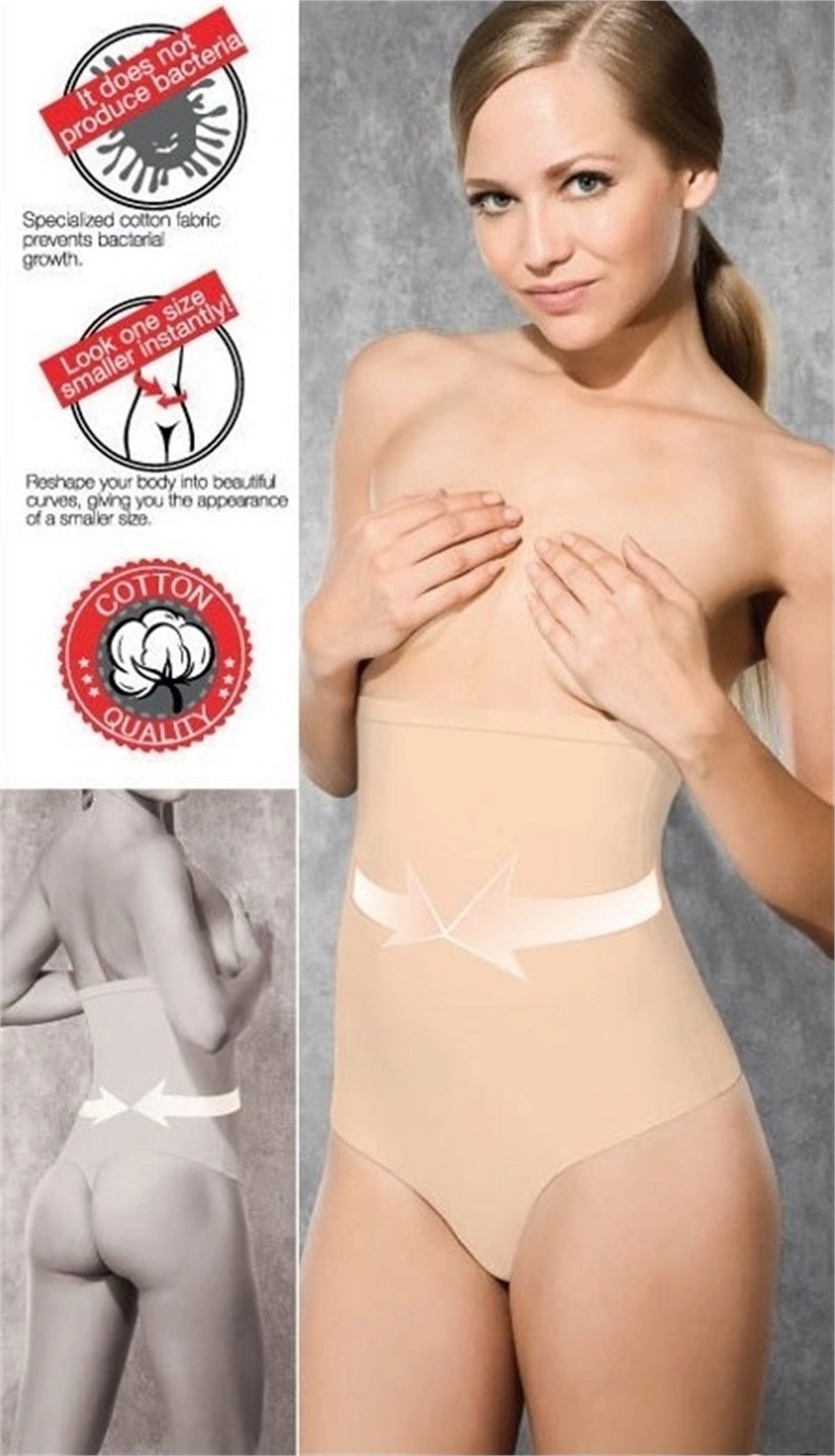 Ürünümüz Korse yüksek bel , slip kesim , beden incelten özelliklere sahip , özel bir dokuma teknolojisi ile üretilmiştir basınç uygulayan teknoloji sayesinde vücudunuz daha fit ve şekilli bir görünüme sahip olur , korse bayanların günlük hayatında çok sık tercih ettiği ürünlerin başını çekmektedir .Bu yüzden korse tercih ederken rahatlığına dikkat etmeliyiz gün içinde sizin rahat etmenizi sağlar ve hareketlerinizi kısıtlamaz . korse çeşitlerimizle siz değerli müşterilerimize daima kaliteli ve geniş ürün yelpazesine sahip ürünleri sunmaktan mutluluk duyuyoruz. Bununla birlikte korse ve diğer iç giyim alışverişlerinizde beden seçiminizin doğruluğundan emin olmanızı tavsiye eder trendsizsiniz ailesi olarak iade ve değişim politikalarımızda; tüm iç giyim , fantezi ve çoraplarda ayıpsız ürünlerin hijyen kuralları gereği iade ve değişimlerinin yapılmadığını önemle bildirerek siz değerli müşterilerimize keyifli ve mutlu alışverişler dileriz.