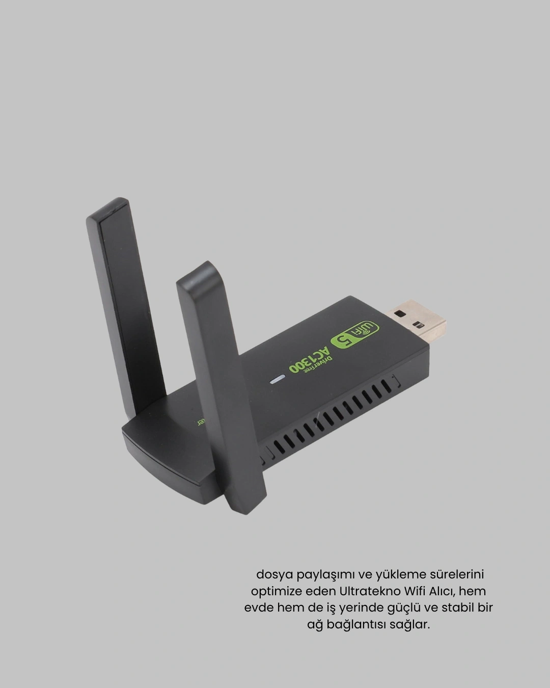 Yüksek hız ve kararlılığı bir araya getiren Dual Band USB WiFi Adaptör, internet deneyiminizi tamamen değiştiriyor!Çift bant teknolojisi sayesinde 2.4 GHz ve 5.8 GHz frekanslarında çalışarak, 1200 Mbps’ye kadar bağlantı hızı sunar. Bu sayede HD video izleme, online oyun oynama veya büyük dosyalar indirme gibi yüksek veri gerektiren işlemleri kesintisiz şekilde gerçekleştirebilirsiniz.Çift antenli güçlü tasarımı, geniş bir kapsama alanı sağlar ve zayıf sinyalli bölgelerde bile istikrarlı bir bağlantı sunar. İnternet kesintileri veya düşük sinyal sorunları artık geçmişte kalıyor.USB 3.0 bağlantı desteği, veri transfer hızını artırarak gecikmeleri en aza indirir. Bu sayede kablosuz bağlantıda maksimum performans elde edilir.Windows 10/8/7/Vista/XP/2000 ve Mac OS X 10.15 işletim sistemleriyle tam uyumludur. Eski ya da yeni bilgisayar fark etmeksizin kolayca tanınır ve hızlı kurulum imkânı sunar. Tak-çalıştır özelliği sayesinde teknik bilgiye gerek kalmadan anında kullanıma başlayabilirsiniz.Hem ev kullanıcıları hem ofis ortamları için ideal olan bu adaptör, stabil, güçlü ve hızlı internet bağlantısı arayanlar için mükemmel bir çözümdür.Modern, pratik ve güçlü: Dual Band USB WiFi Adaptör ile her yerde kesintisiz bağlantı keyfi sizi bekliyor!