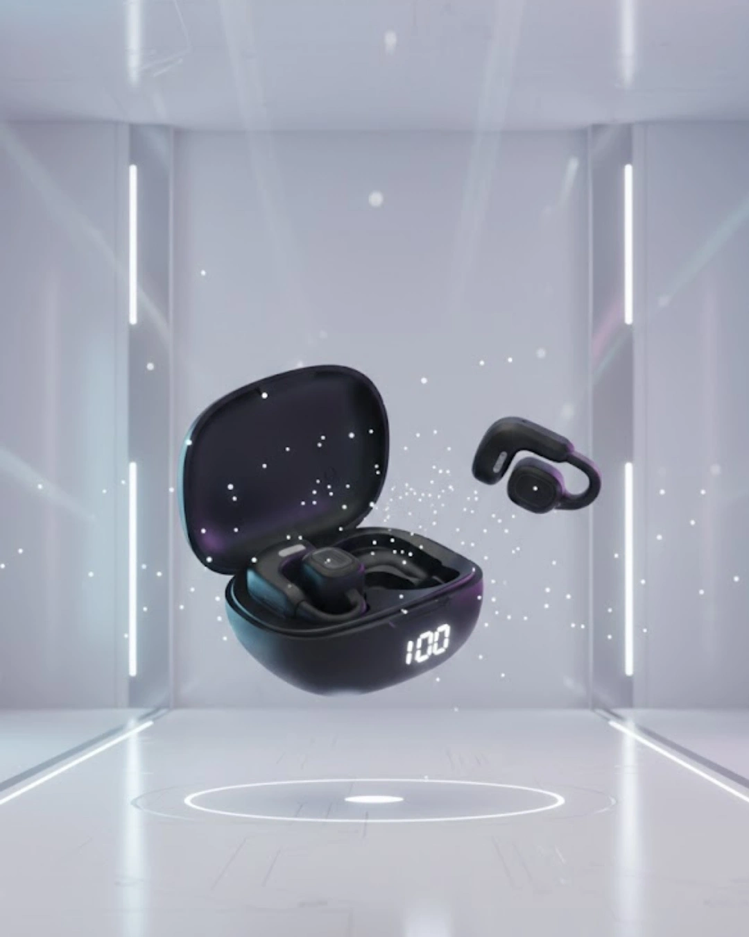 Kulak içi baskı hissi olmadan müzik dinlemek isteyenler için tasarlanan bu kablosuz kulaklık, açık kulak yapısıyla güvenli ve konforlu kullanım sağlar. Spor sırasında çevre farkındalığını korumanıza yardımcı olur. Dual mikrofon sistemi, sesli aramalarda daha net iletişim sunar. Şık ve kompakt şarj kutusu, taşıma kolaylığı sağlar. Hem spor hem de günlük kullanım için uygundur.