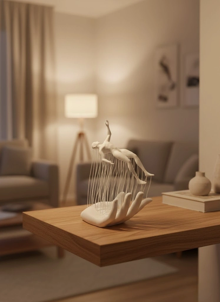 El İnsan Figürü Beyaz, modern ve sanatsal tasarımıyla yaşam alanlarına estetik bir dokunuş kazandırır. El formu üzerinde yer alan insan figürü, özgürlük, denge ve zarafeti simgeleyen soyut bir kompozisyon sunar. Minimal tasarımı sayesinde salon, ofis, çalışma odası veya kitaplık gibi alanlarda kolaylıkla kullanılabilir. Beyaz rengi sayesinde hem sade hem de şık bir görünüm elde edilir. Modern, minimal, İskandinav ve loft tarzı dekorasyonlarla uyum sağlar. Raf, sehpa, konsol ya da masa üzerinde tek başına güçlü bir dekoratif vurgu oluşturur. 12×18 cm ölçüsü ile yer kaplamadan dikkat çeken bir biblodur. Dekoratif objeleri sevenler için ideal bir tamamlayıcıdır. Ev dekorasyonunda sanatsal detaylara önem verenler için özel bir seçenektir.