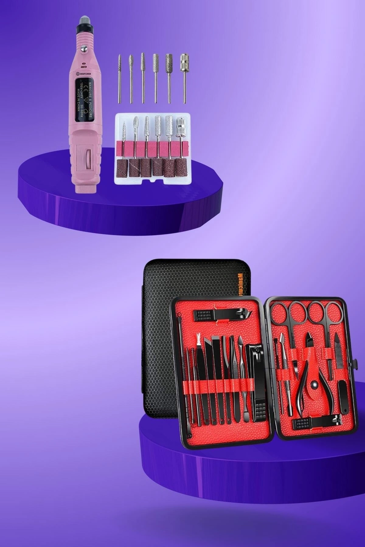 Elektrikli Manikür-Pedikür-Törpü Makinesi ile tırnak bakımınızı profesyonel bir kuaför kalitesinde, pratik ve kolay bir şekilde evinizde yapabilirsiniz.; Pedikür ve manikür işlemleri için özel olarak tasarlanan bu cihaz, tırnaklarınızı şekillendirmenize, törpülemenize ve pürüzsüz bir görünüm kazanmanıza yardımcı olur.; İki farklı hız ayarı sayesinde ihtiyacınıza uygun çalışma temposunu seçebilir, düşük gürültü ve titreşim özelliğiyle konforlu bir kullanım deneyimi yaşayabilirsiniz.; Ergonomik ve hafif kalem tasarımı sayesinde kolayca kavranarak rahat bir kullanım sunar.; Set içerisinde bulunan 6 farklı metal uç ve 6 adet zımpara başlığı, çeşitli bakım ihtiyaçlarınıza uygun seçenekler sunarken, güçlü motoru ve 20.000 RPM hız kapasitesiyle etkili sonuçlar almanızı sağlar.; Adaptör fişiyle çalışan bu cihaz, hem profesyonel salonlarda hem de evde kullanım için ideal bir seçimdir.; Kendiniz veya sevdikleriniz için mükemmel bir hediye alternatifi olan bu ürünle tırnak bakımınızı zahmetsiz ve keyifli bir hale getirebilirsiniz.