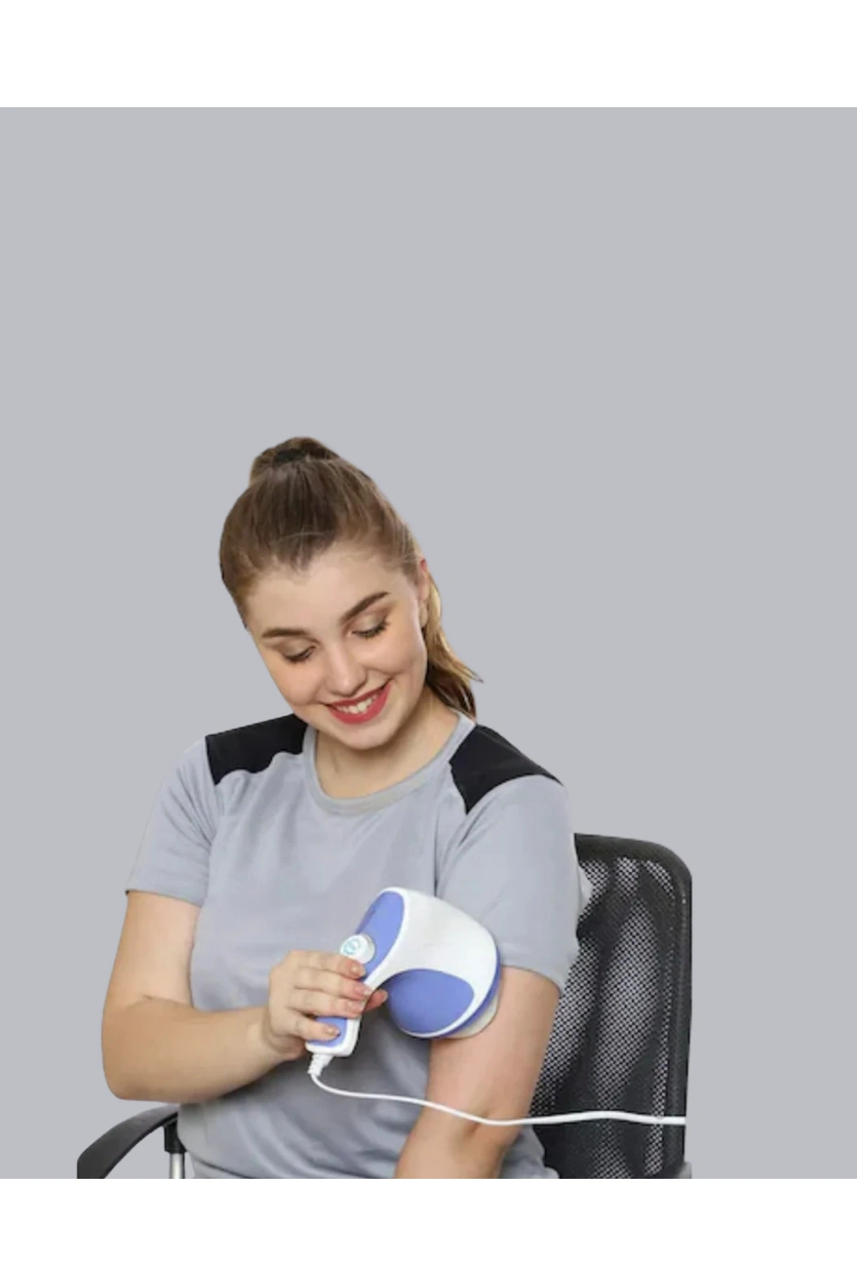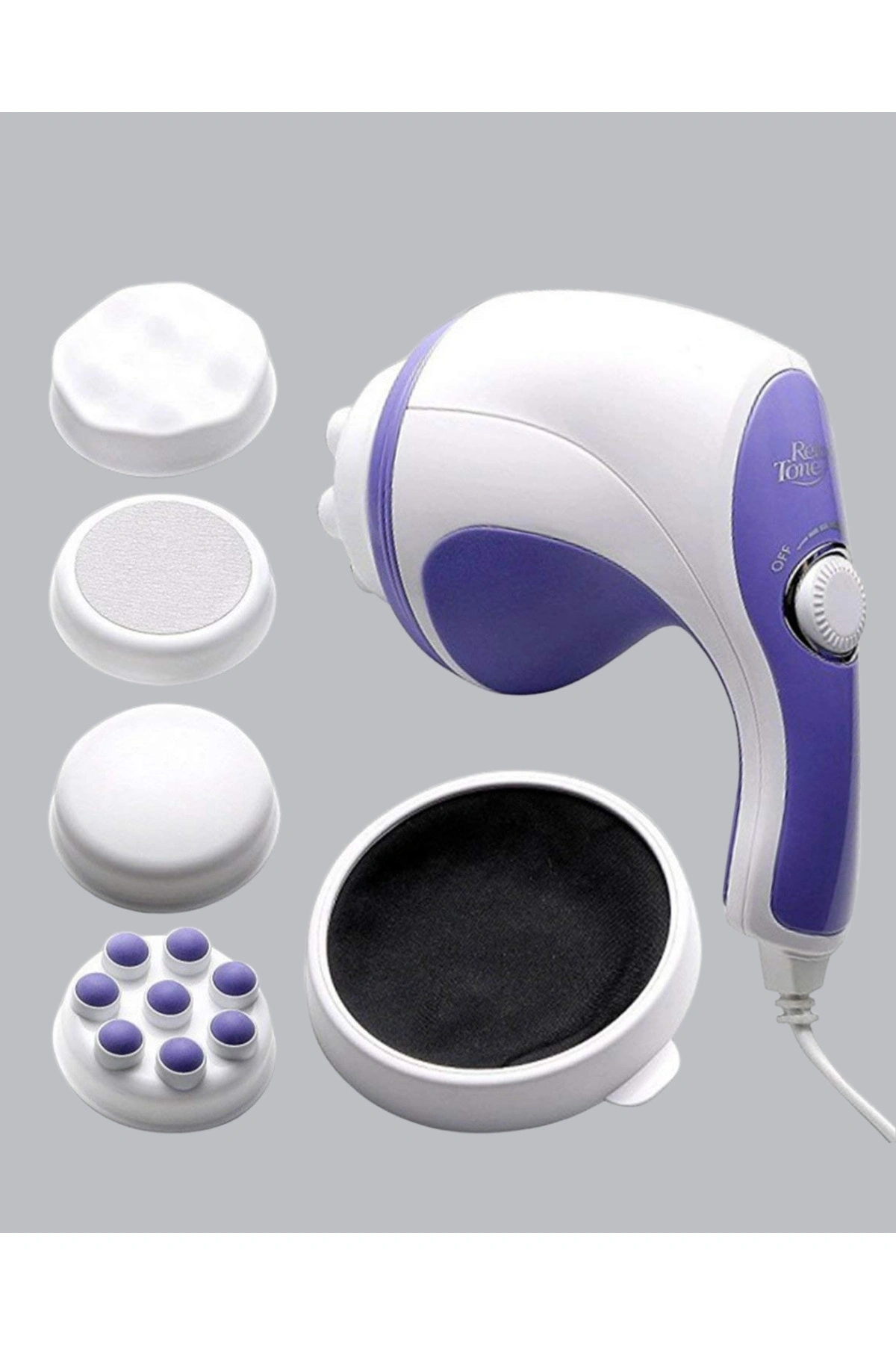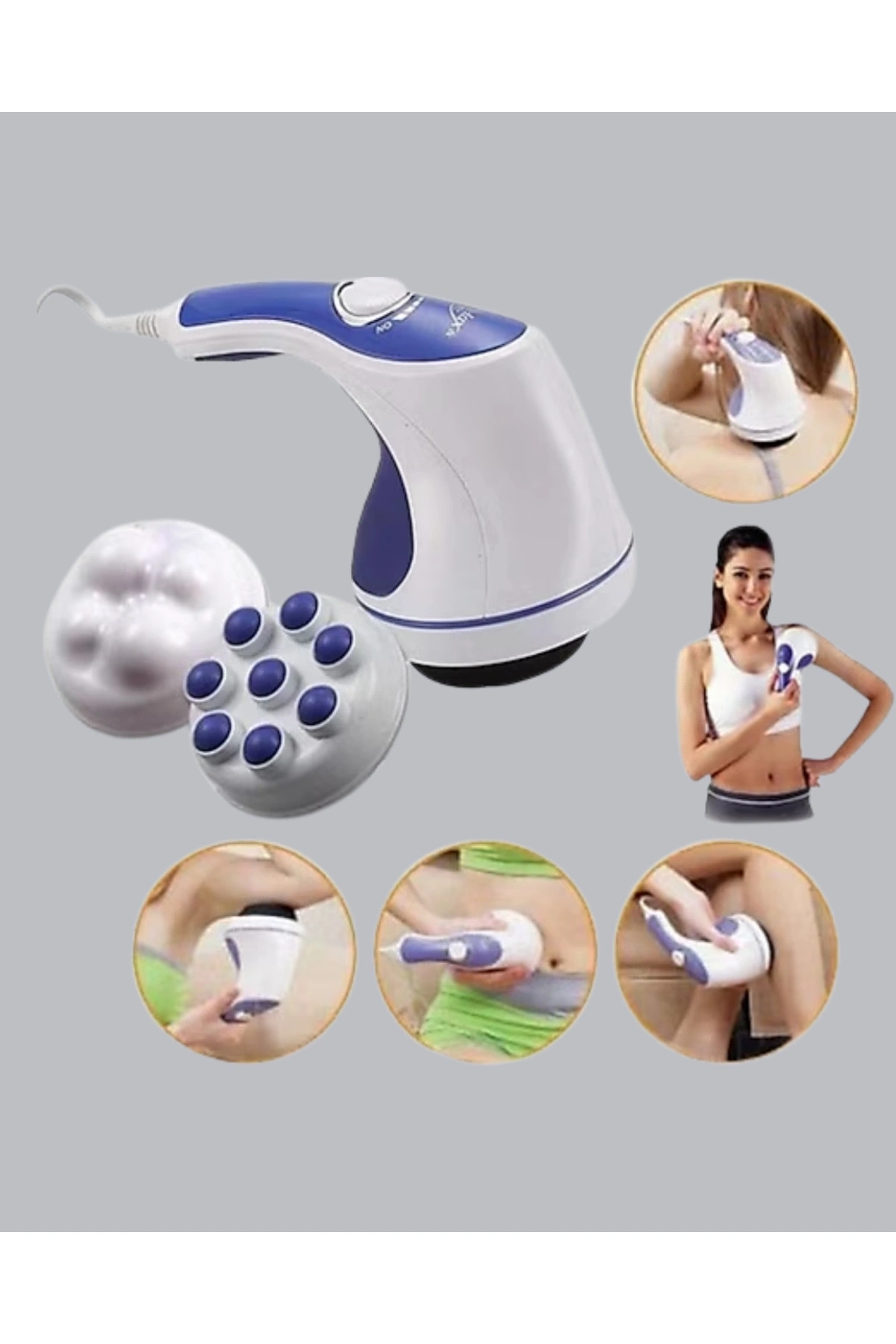 Daha sıkı ve formda bir görünüm hedefleyenler için tasarlanan bu elektrikli masaj aleti, 2200–2500 RPM aralığındaki güçlü titreşim performansı ile çalışır.; Yüksek frekanslı titreşimler sayesinde kan dolaşımının desteklenmesine yardımcı olur, cilt yüzeyini uyarır ve düzenli kullanımda daha toparlanmış bir görünüm elde edilmesini destekler.; Aynı zamanda selülit görünümünün azalmasına katkı sağlar.; Cihaz, 5 farklı değiştirilebilir başlık ile birlikte gelir.; Karın, bacak, kalça, kol ve sırt gibi farklı bölgelerde hedef odaklı kullanım imkânı sunar.; Her başlık farklı masaj etkisi oluşturarak hem yüzeysel hem derin dokulara etki eder.; Bu sayede kasların gevşemesine yardımcı olurken cilt dokusunun canlanmasını destekler.; Ayarlanabilir hız seçenekleri, kullanım yoğunluğunu kişisel ihtiyaca göre belirlemenizi sağlar.; Ergonomik tasarımı sayesinde ele rahat oturur ve uzun süreli uygulamalarda konfor sunar.; Hafif yapısı, pratik kullanım avantajı sağlar.; Ev ortamında profesyonel bakım hissi sunan bu cihaz, hem kas gevşetme hem de yağ yakım sürecini destekleme amacıyla kullanılabilir.; Sessiz çalışma özelliği ve düşük enerji tüketimi sayesinde günlük kullanıma uygundur.; Düzenli uygulama ile daha sıkı, pürüzsüz ve canlı bir cilt görünümü elde etmenize yardımcı olur.