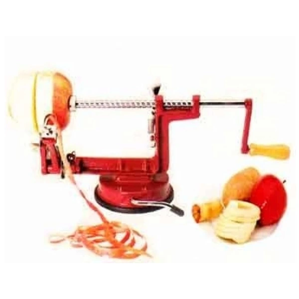 ELMA DİLİMLEME ALETİ Ürün AçıklamasıElma yemek ve soymakhiç bu kadar zevkli olmamıştı! Özellikle çocuklu ailelerin kaçırmaması gerekenbir ürün. Armut, Ayva, Patates ve Turp soymak için de güvenlekullanabilirsiniz. Paslanmaz çelik bıçağı ile elmayı mükemmel incelikte soyar.Kullanımı kolaydır, meyve 3′lü çiviye saplanır, çevirme kolunu çevirince aletçalışır.Meyve yemeyen çocuklarınıza elma armut yemeyi sevdiren birüründür.Güçlü vakum tabanı ile her yüzeye sabitlenir, kullanım sırasındakaymaz.Tüm bıçakları takıp çıkarılabilirözelliktedir. Ürün dökme demirden yapılmış olup bıçakları paslanmaz çeliktenimal edilmiştir. Soyma Bıçağı farklı kalınlıkta soymak için ayarlanabilir,oynar başlığı ile her boyda meyveyi rahatça soyar. Bıçak başlıklarını ayarlamak suretiyle dilerseniz sadece soyma, sadecedilimleme ve çekirdek çıkarma yapabilirsiniz. Temizlemesi ve yıkaması kolaydır.Okul kantinlerinde, restoranlarda,otellerde, mutfağınızda, piknikte kısacası her yerde rahatça kullanabilirsiniz.Elmaların kabuğunu kolay ve hızlıca soyar, elmanın çekirdeğini çıkartır,Meyveleri eşit spiral halkalar halinde dilimler, dekoratif bir görüntüoluşturur.Dilimler birbirinden ayrılmadan tek parça halinde çıkar.Kabuklarıince ve düzgün bir şekilde soyar.Vakumlu alt kısmı sayesinde zemine kolaycasabitlenir ve kolay kullanım imkanı sunar.Ayrıca, elma turtası, elma mezesi,meyve salatası, kuru meyveler, patates, turp ve daha bir çok meyveyi soymakiçin idealdir. Soyulacak olan meyvelerin şekline göre otomatik olarakayarlanır. Altındaki vantuz ile bulunduğu ortama kolayca tutunur. Ürün Boyutları Uzunluk:20 cmYükseklik:14 cm  Genişlik: 11 cm Paket İçeriği 1 Adet elma dilimleme ve soyma makinesi