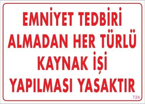 Emniyet Tedbiri Almadan Herlü Kaynak Yasaktır Levhası 25x35 KOD: 724