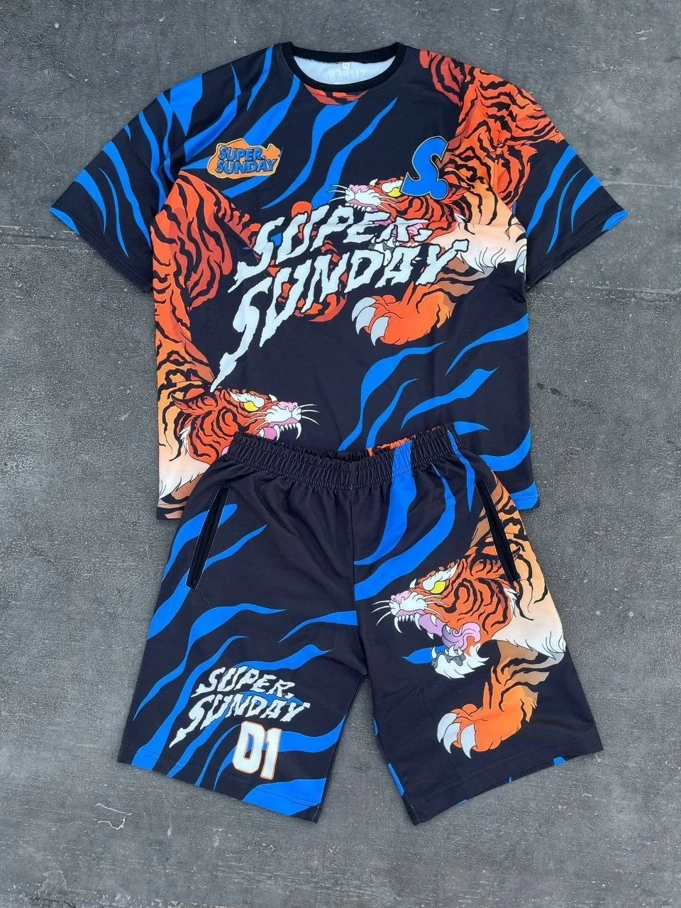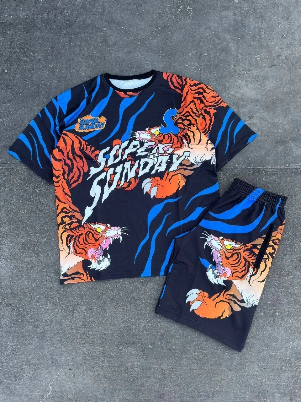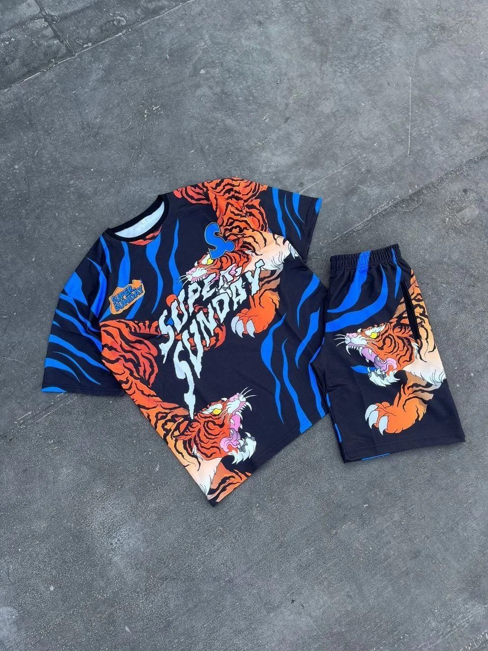 • Erkek Dijital Baskılı Şortlu Takım - Mavi