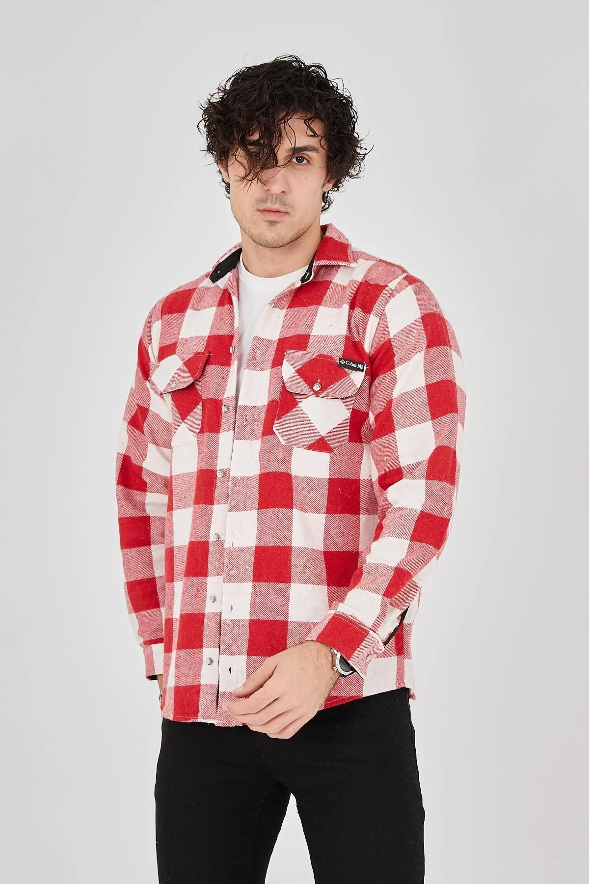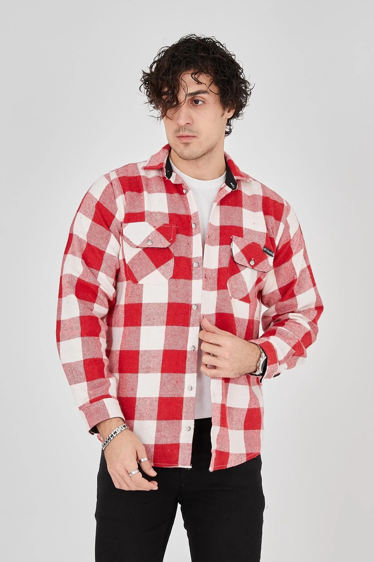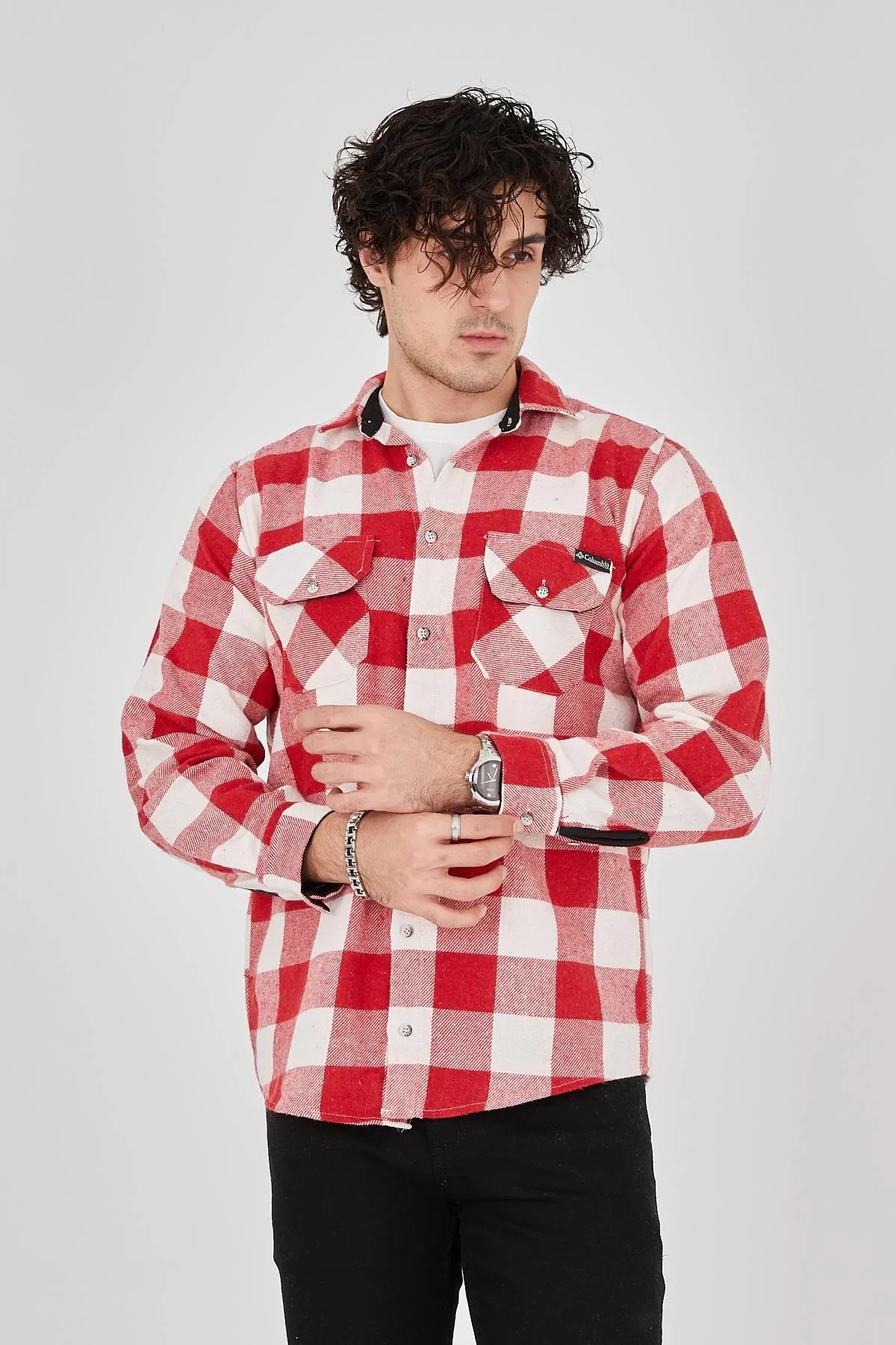 • Erkek Oduncu Gömlek – Uzun Kollu, Şardonlu Kumaş, Kareli Desen, Regular Fit, Manşetli, Çift Cepli, Rahat Günlük Bahar & Kış Stil - Pembe