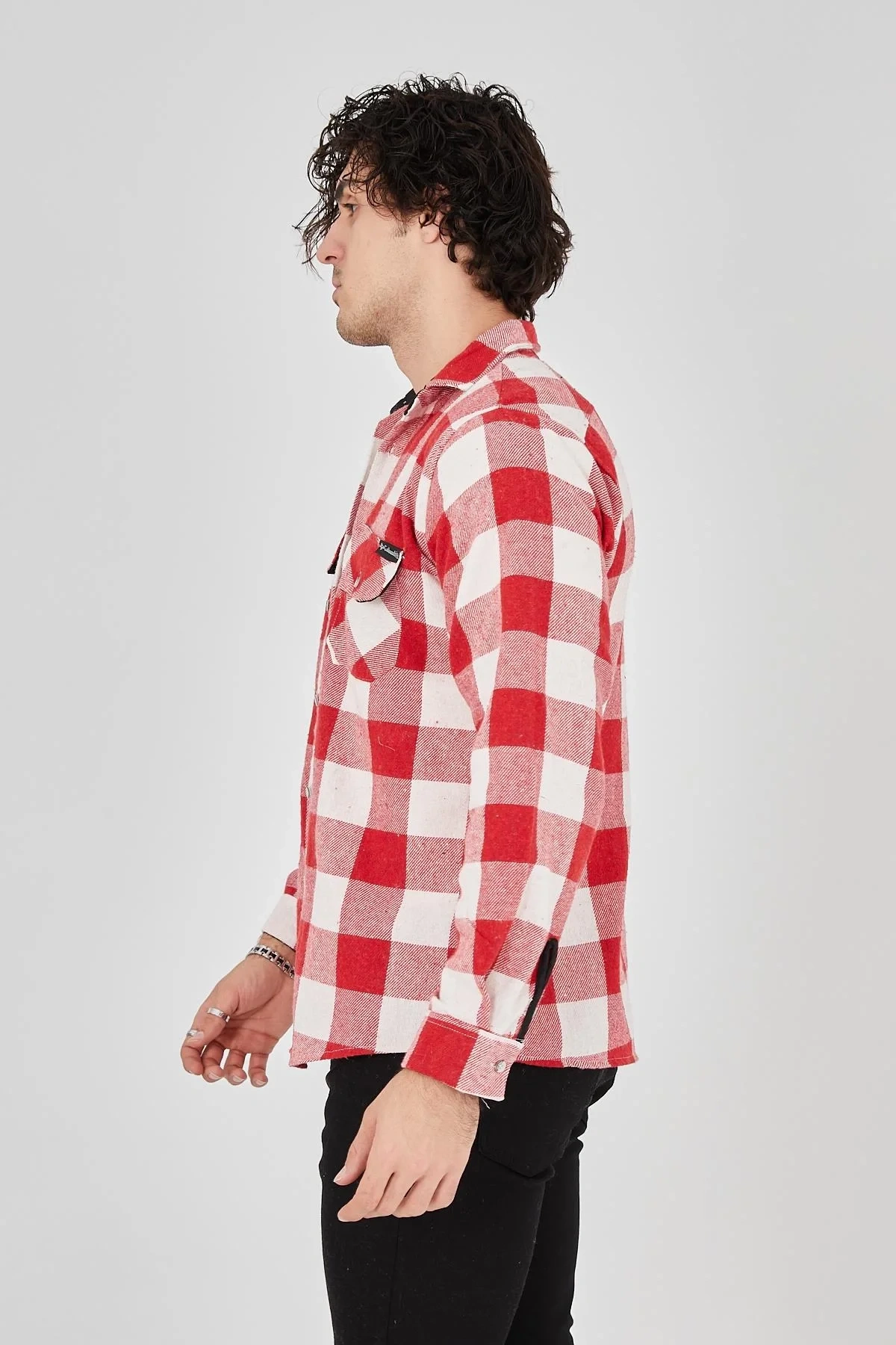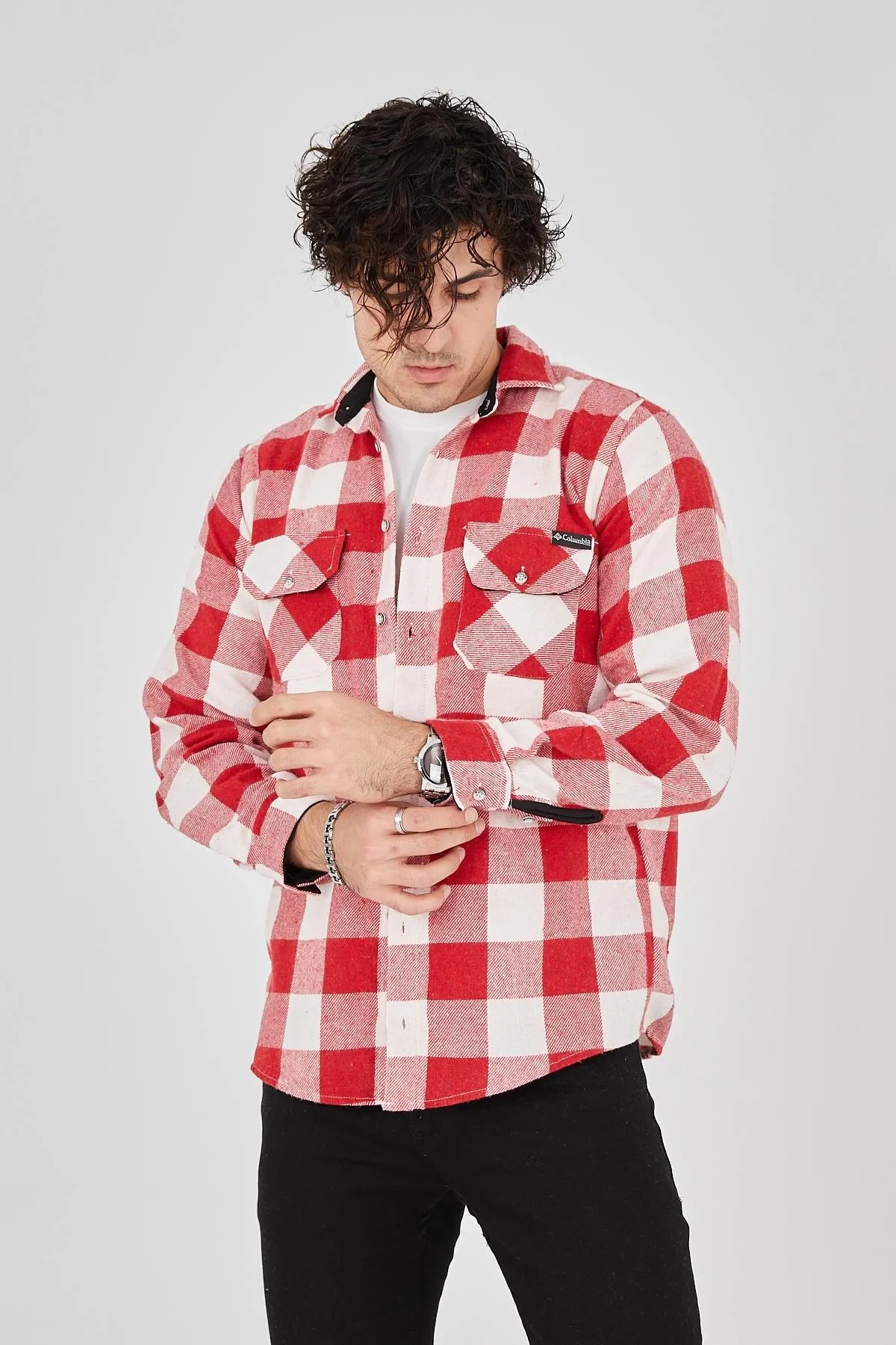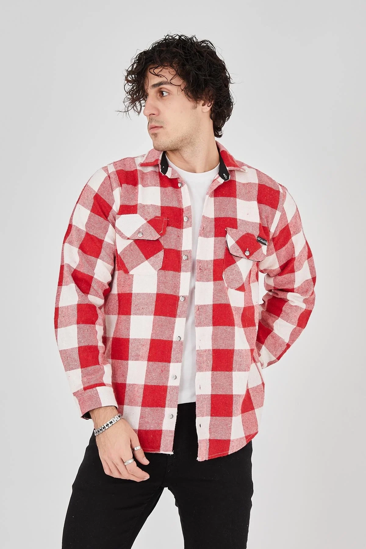 • Erkek Oduncu Gömlek – Uzun Kollu, Şardonlu Kumaş, Kareli Desen, Regular Fit, Manşetli, Çift Cepli, Rahat Günlük Bahar & Kış Stil - Pembe