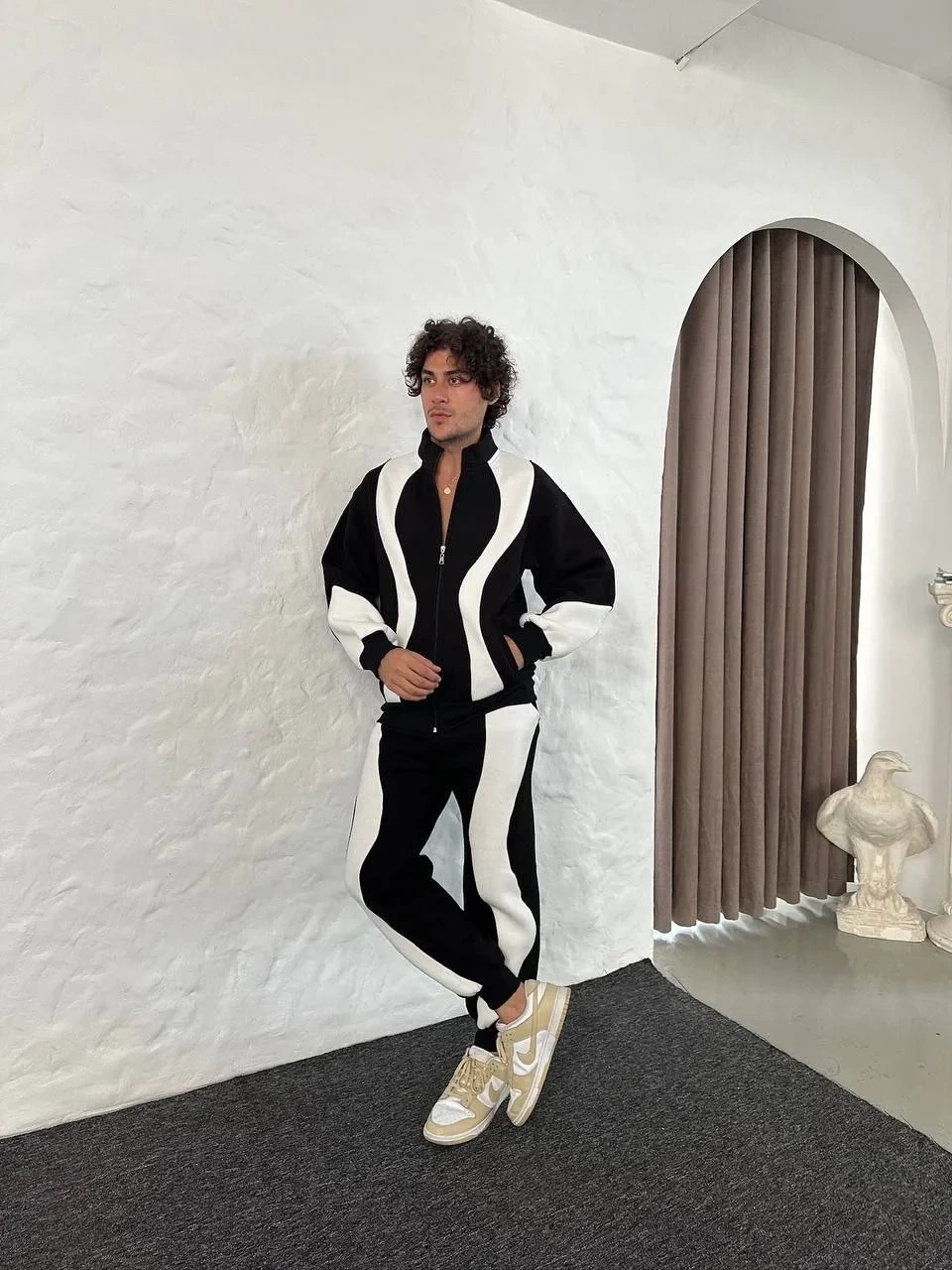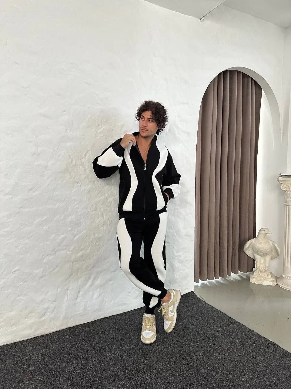 • Erkek Premium Parçalı Eşofman Takım - Dik Yaka Fermuarlı Sweatshirt, - Siyah