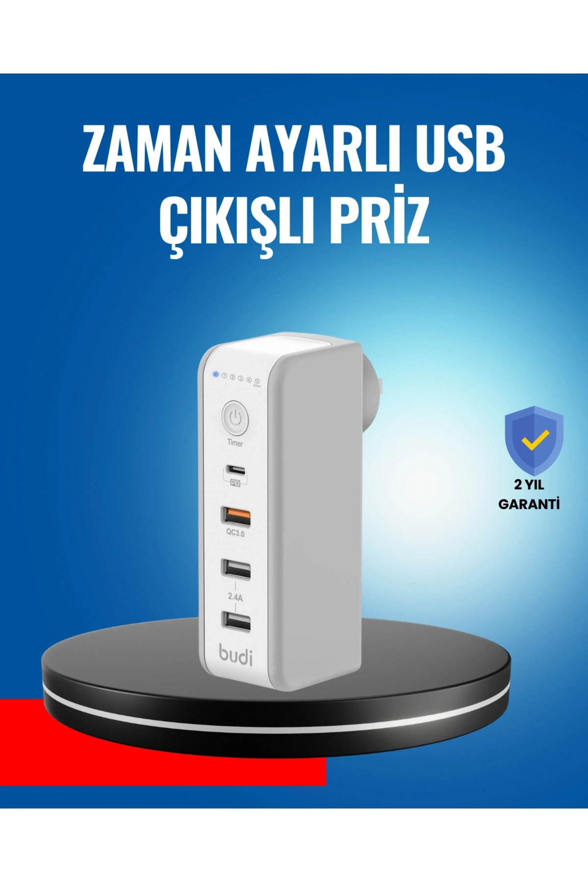 Zaman kontrollü çoklu şarj cihazı, enerji tasarrufu ve batarya korumasını ön planda tutan kullanıcılar için geliştirilmiştir.; 30W hızlı şarj desteği, modern cihazlarla uyumlu yapı sunar.; Manuel zaman ayarları sayesinde şarj süresi kontrollü şekilde yönetilir.; Akıllı koruma sistemi, güvenli şarj deneyimi sunar.; Ev ve ofis kullanımına uygun tasarımı ile günlük hayatı kolaylaştırır.