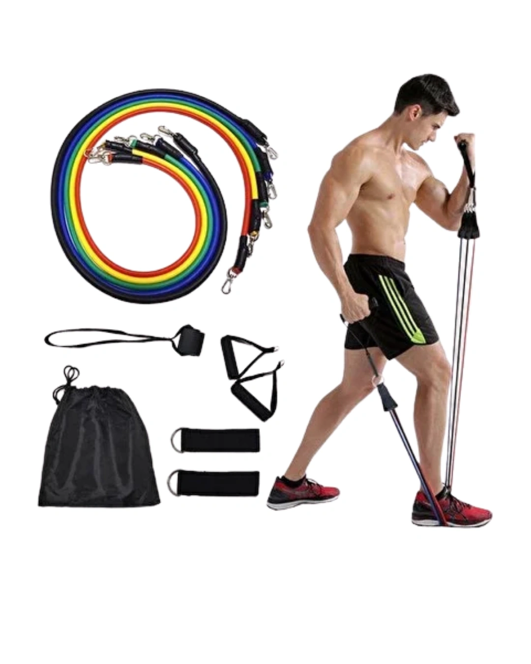 Ev tipi spor ekipmanları arasında öne çıkan bu direnç bandı seti, çok yönlü kullanım avantajı sunar. Pilates, fitness, kuvvet antrenmanı ve rehabilitasyon egzersizleri için idealdir. Farklı direnç seviyeleri ile kişisel antrenman programınıza uyum sağlar. Set içerisindeki aksesuarlar sayesinde üst vücut ve alt vücut kas gruplarını dengeli bir şekilde çalıştırabilirsiniz. Kompakt tasarımı ile az yer kaplar, kolayca saklanır. Evde egzersiz yapmak isteyenler için fonksiyonel, ekonomik ve etkili bir çözümdür.