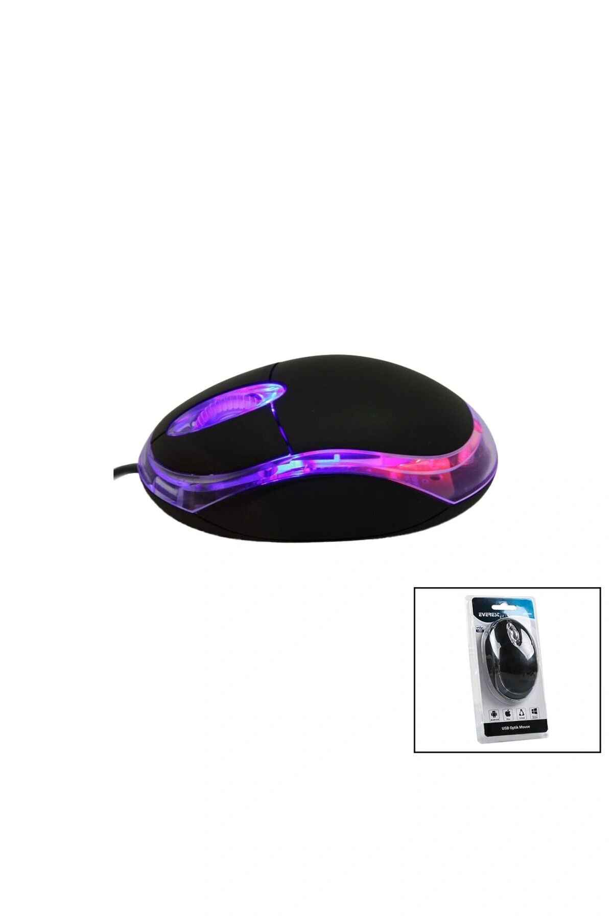 EVEREST KM-6809 KABLOLU USB - IŞIKLI SİYAH OPTİK MOUSE 1200 DPI VAKUMLU AMBALAJ 110CM KABLO